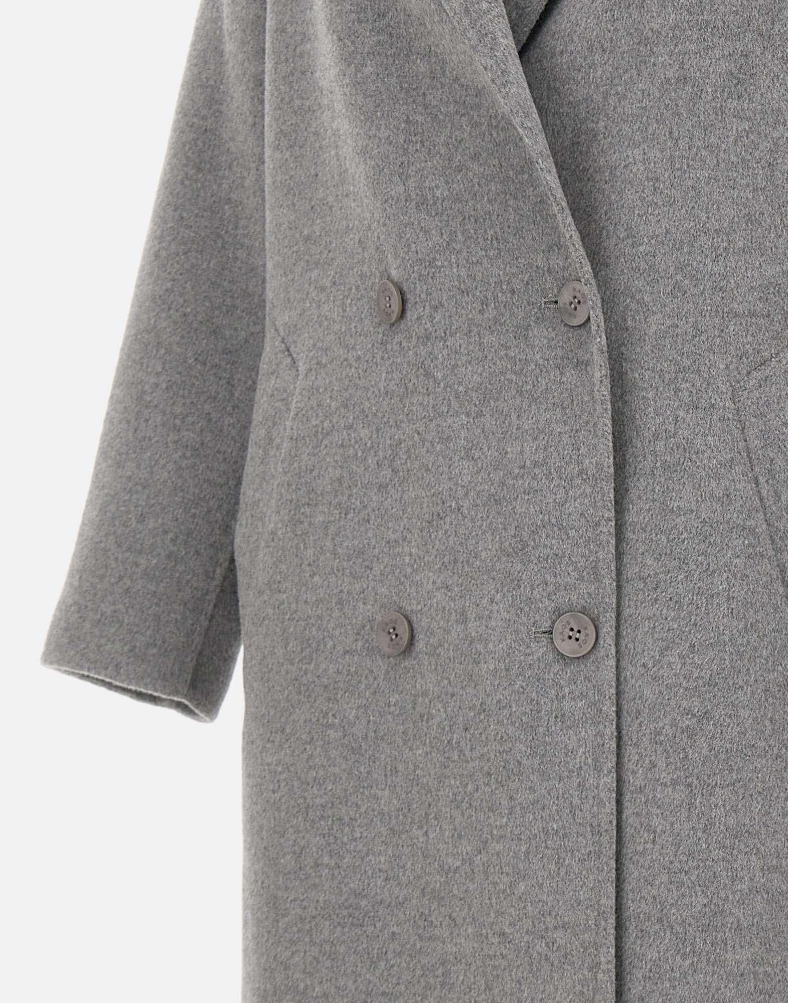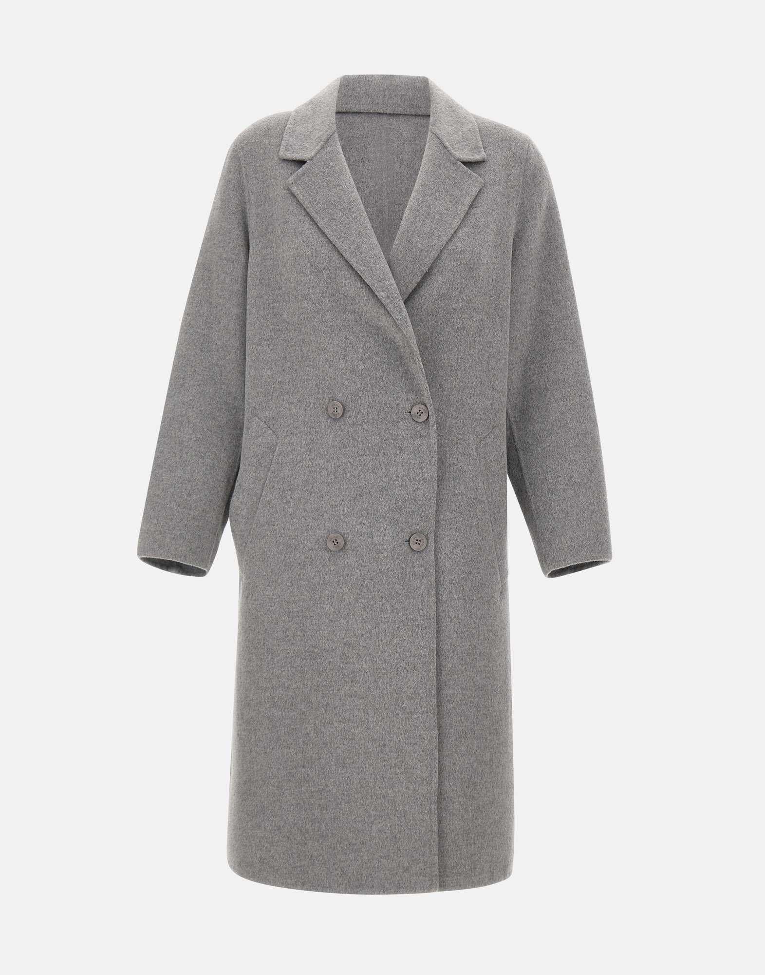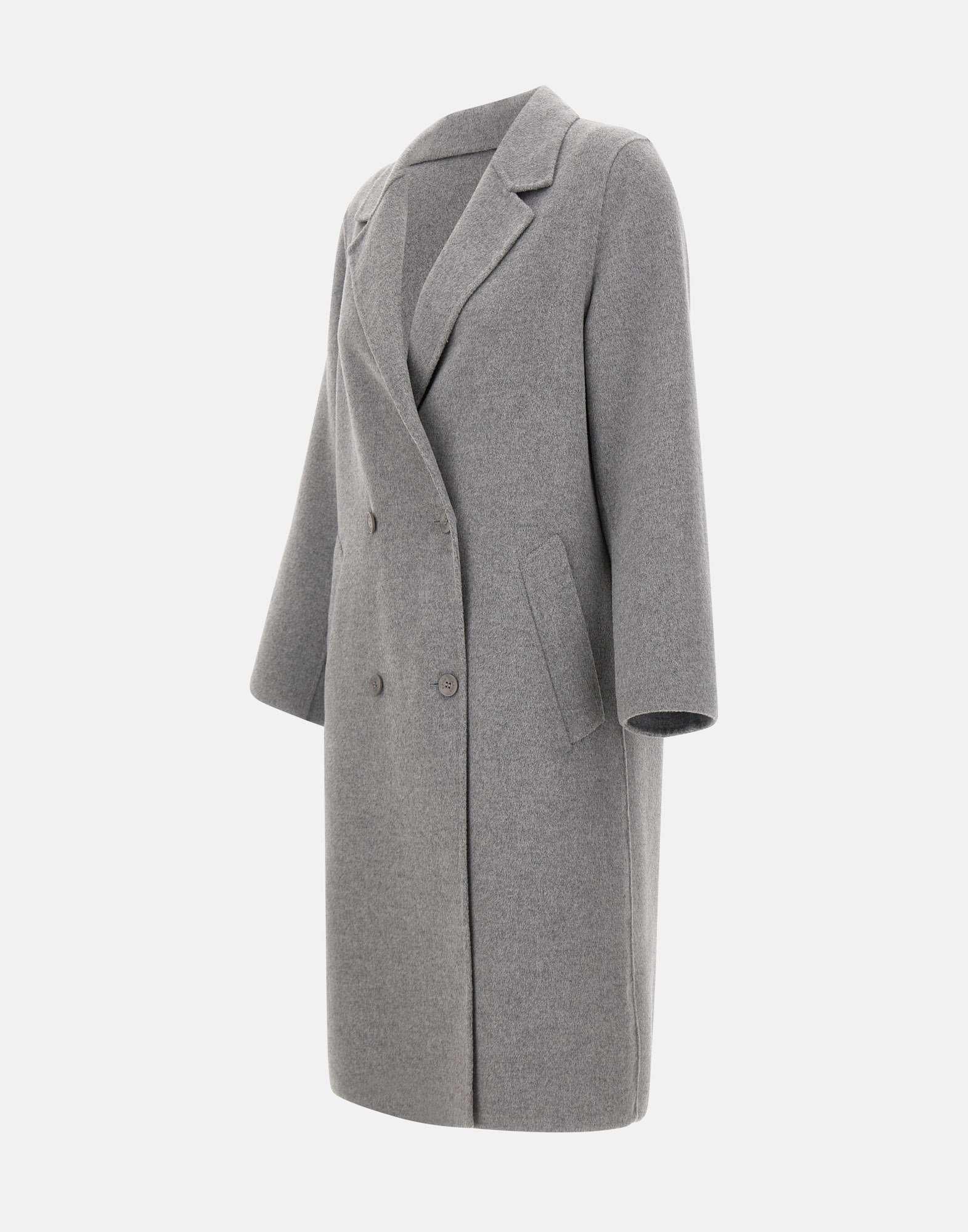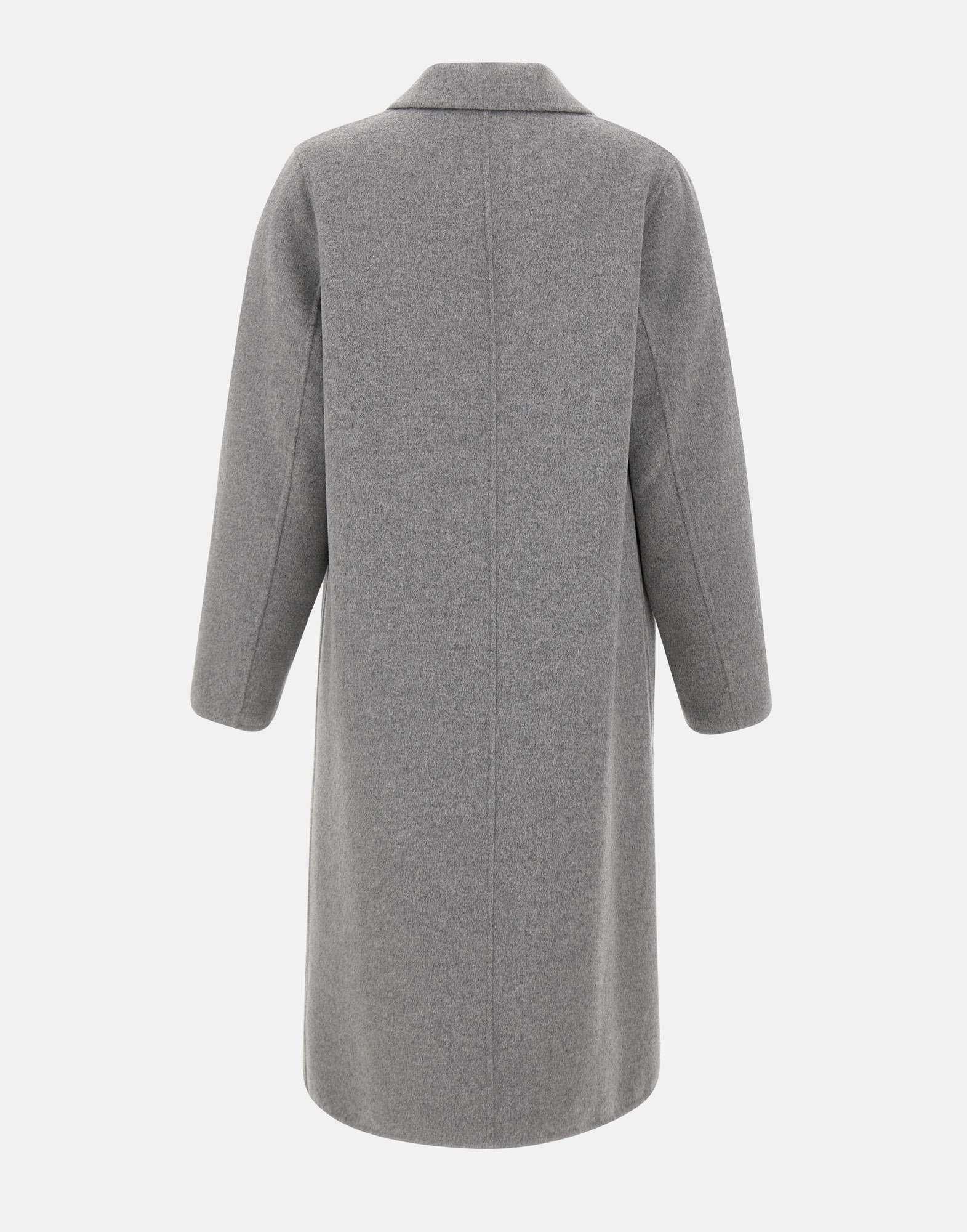 This sophisticated and versatile women's Kaos coat is crafted from a high-quality wool and viscose blend. The neutral gray color easily complements any outfit, while the long cut and oversized fit offer a modern and comfortable silhouette. The design features narrow lapels and a double-breasted closure with logo buttons, adding a distinctive and classy touch. The side welt pockets are perfect for storing essentials, while the fully lined interior ensures comfort and an optimal fit.