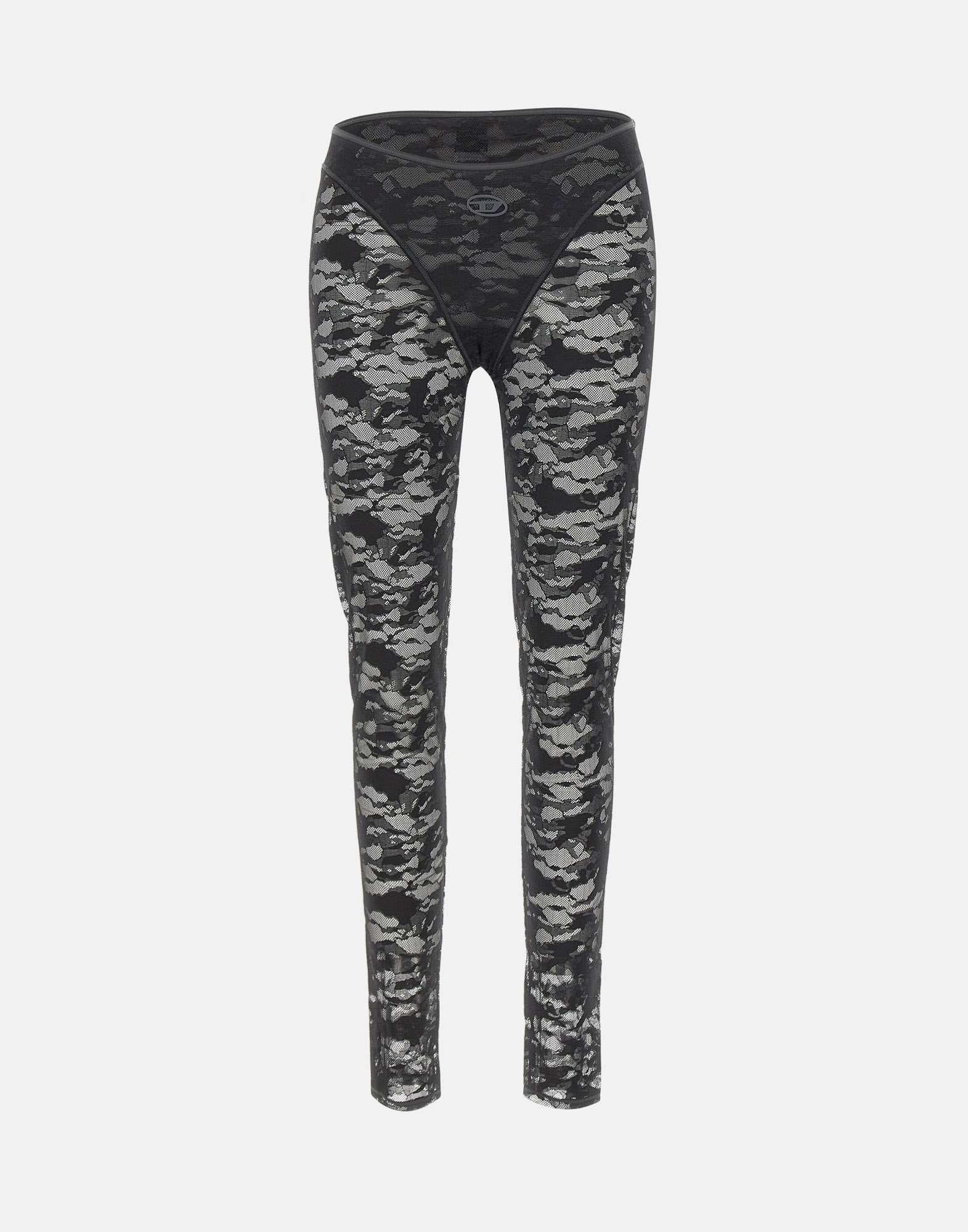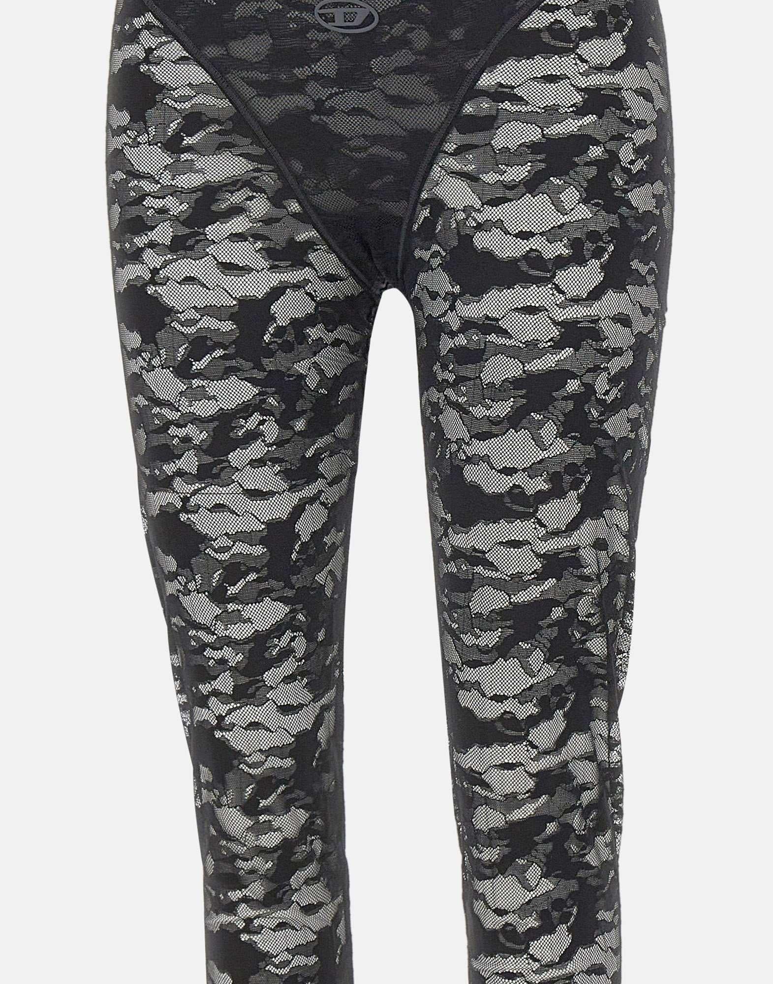 "Claire-utlt leggins" Diesel, black, soft stretch lace fabric on camouflage pattern and utility inspiration, Oval D logo on elasticated waist, slim fit