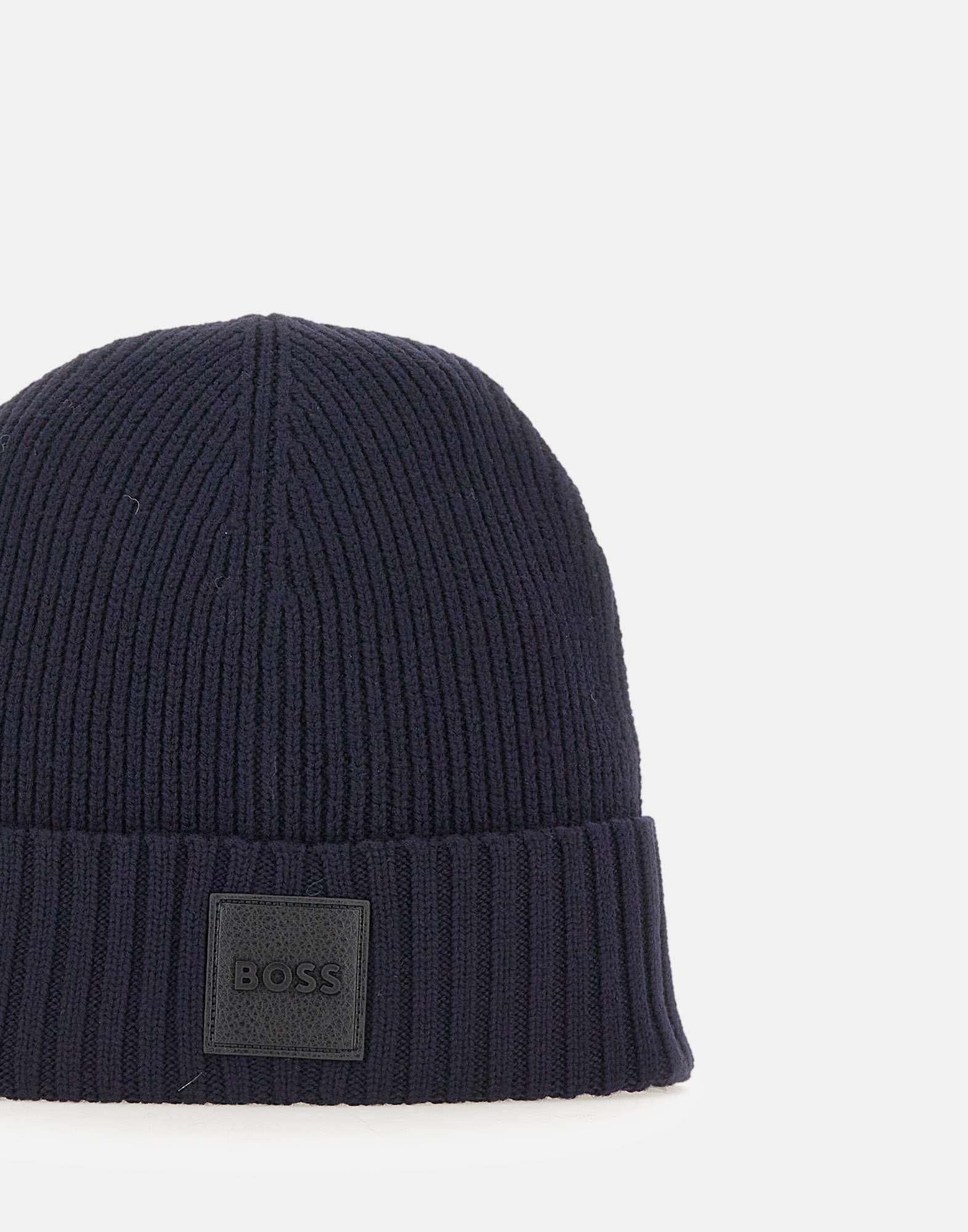 The Boss "Flavio" beanie, blue color, is crafted from a ribbed cotton-wool blend, offering both warmth and breathability for everyday comfort. Its minimalist design is finished with a tonal embossed-logo label on the brim. A one-size accessory, versatile and refined, ideal for completing casual and modern looks.