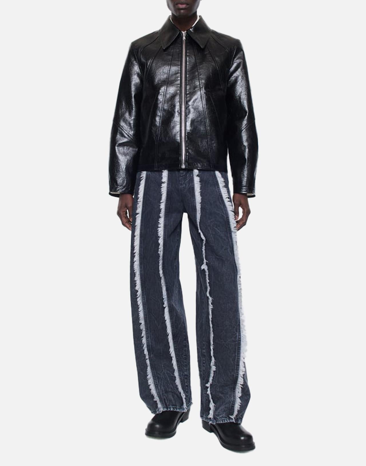 Sefr "Duke" men's technical faux leather jacket, black, crafted from an innovative blend of viscose and metal for a structured, modern look. It features a pointed collar, numerous visible stitching on the front and sleeves, a zip closure, two large exterior pockets, and an interior pocket. Fully lined in cotton for maximum comfort. Regular fit.