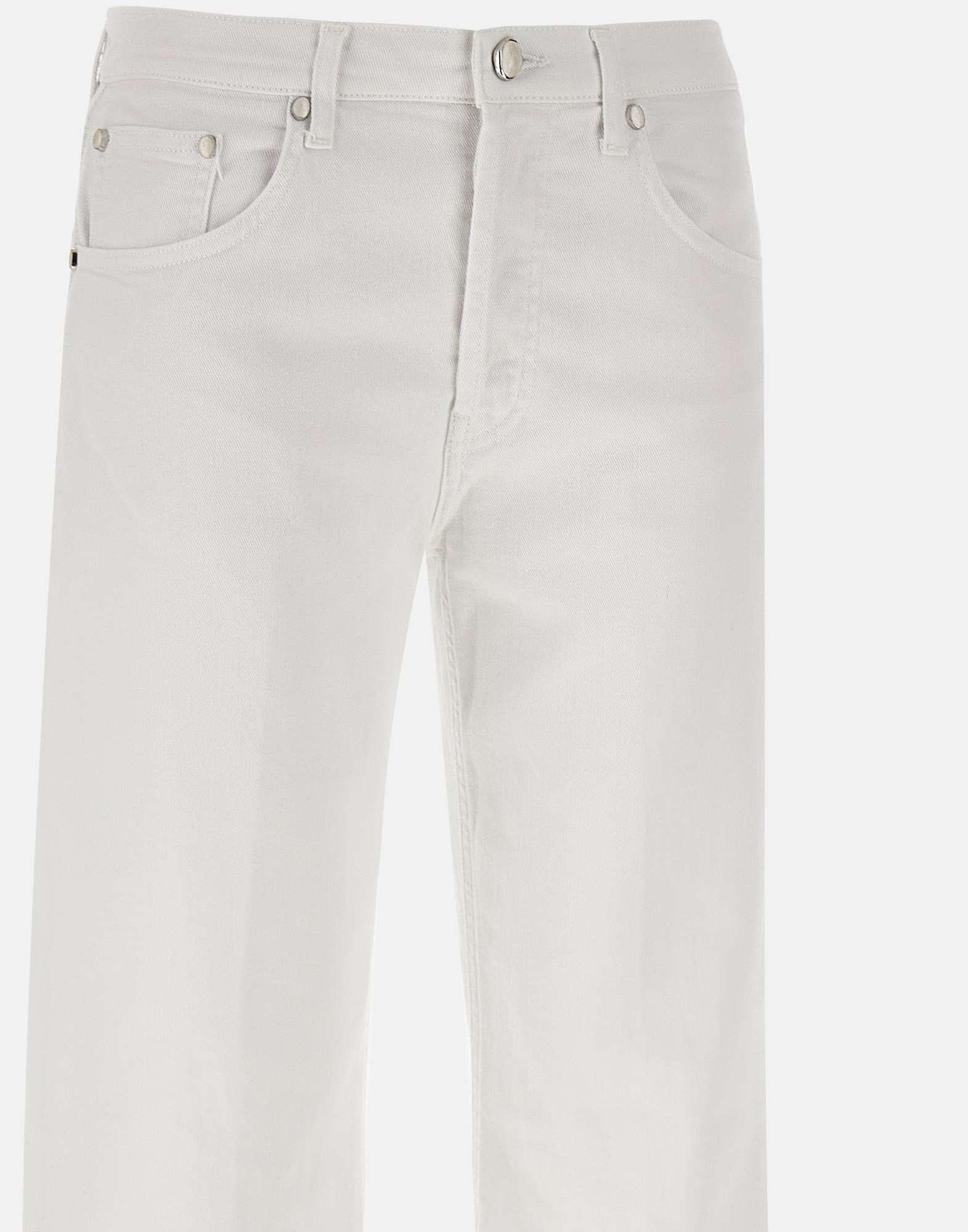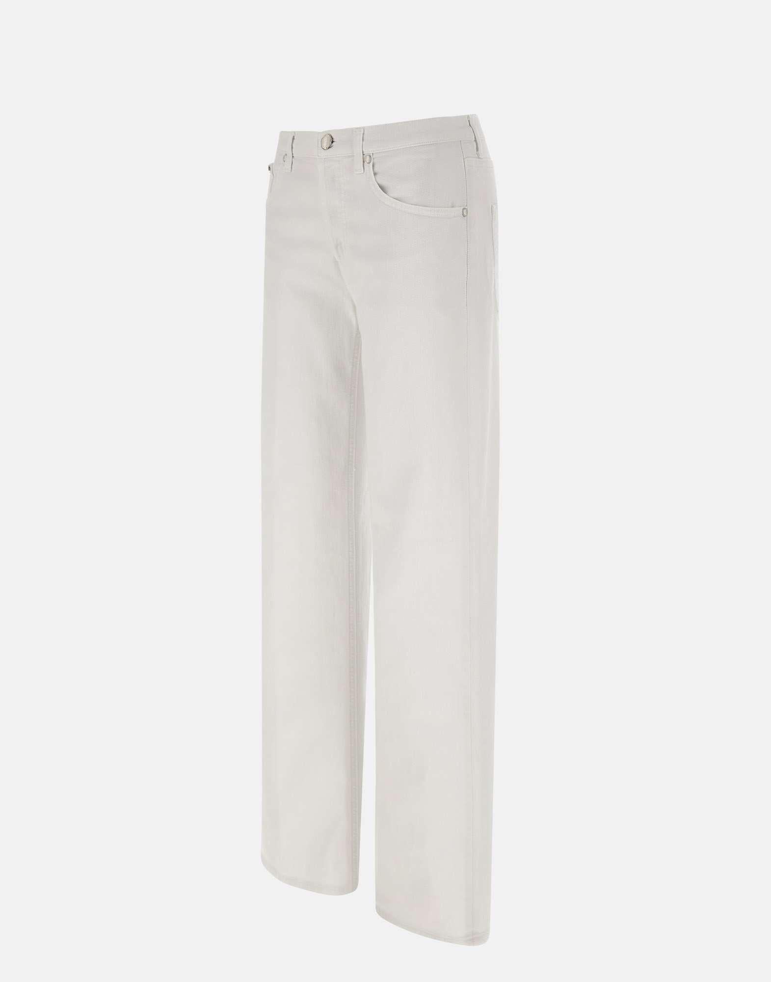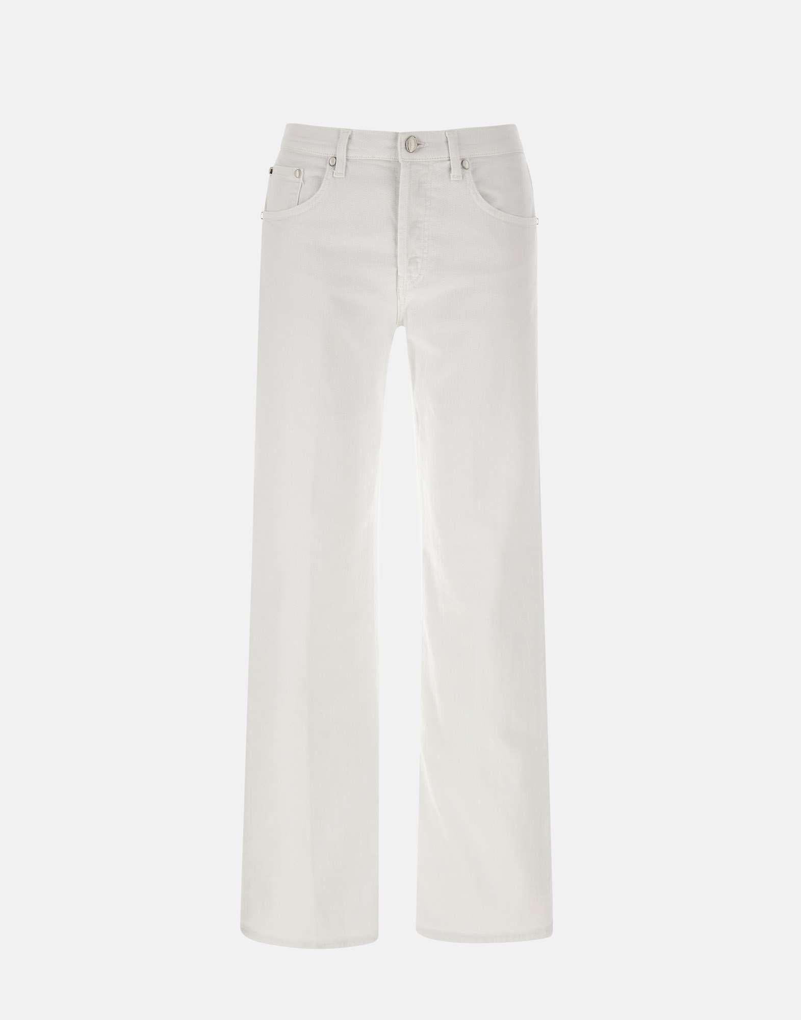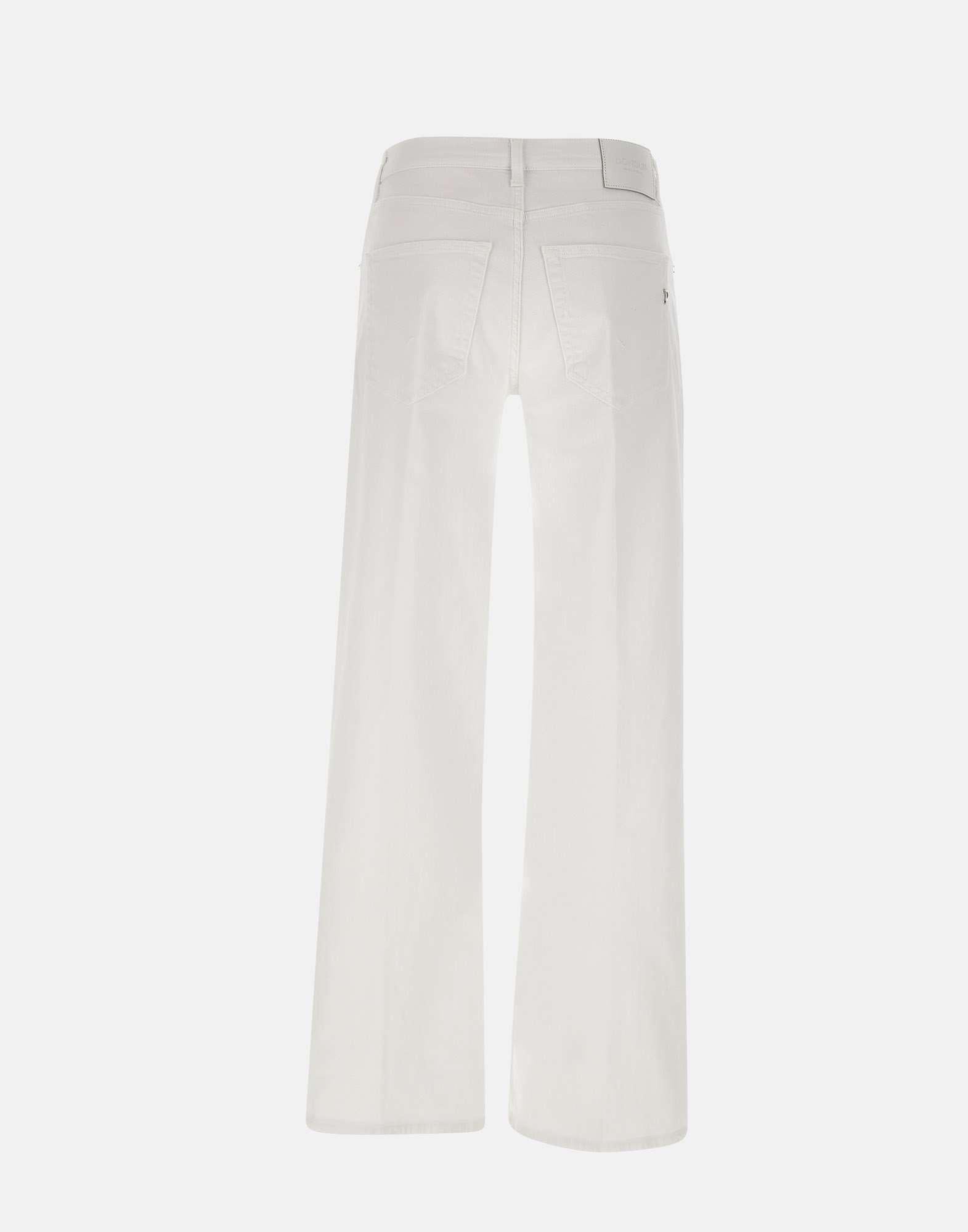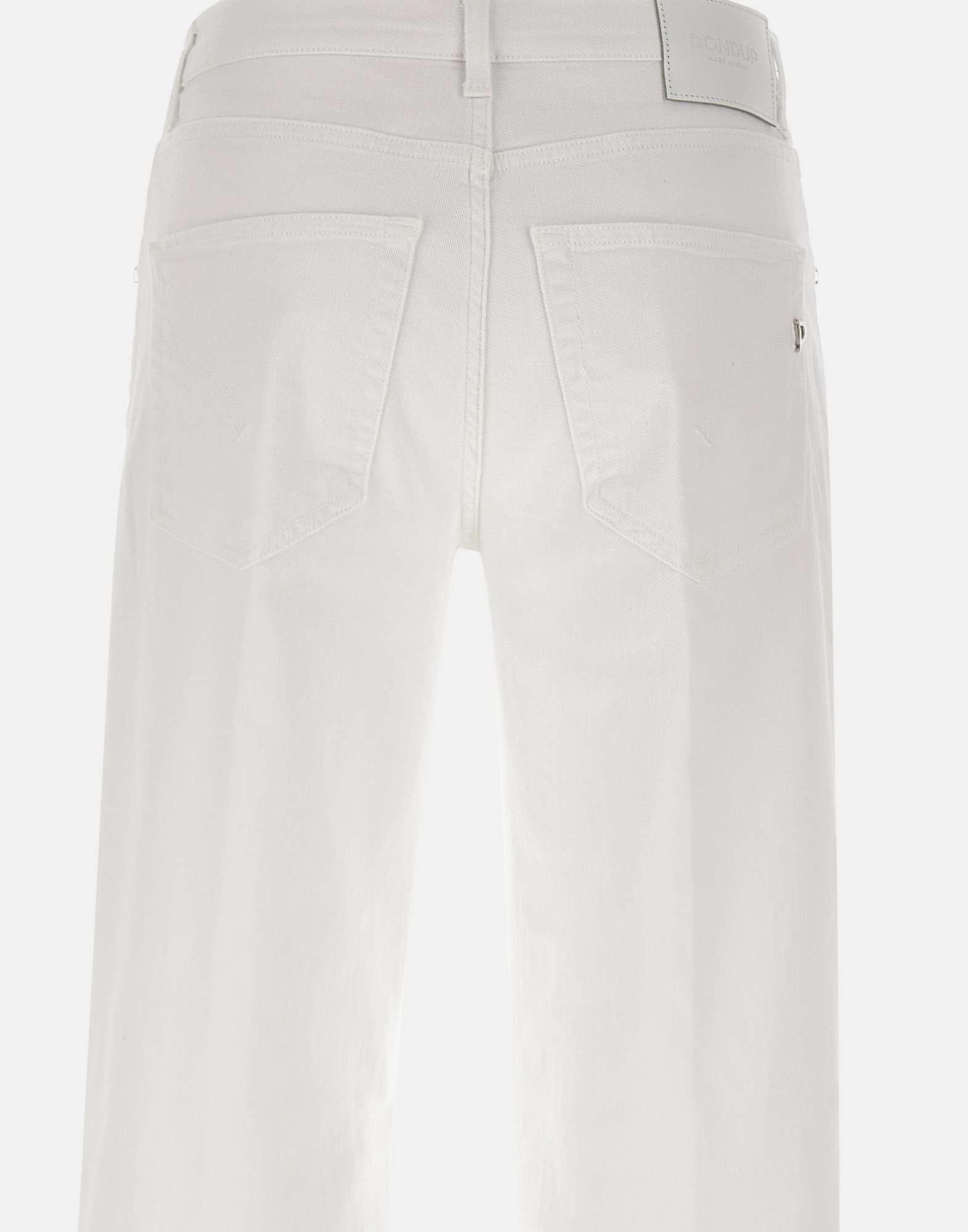 Dondup "Jacklyn" women's cotton jeans, white, five pocket model, jewel button closure, waist with belt loops, matching leather logo patch on back with mini iconic metal logo on pocket, loose fit with straight and wide line of leg, Made in Italy.