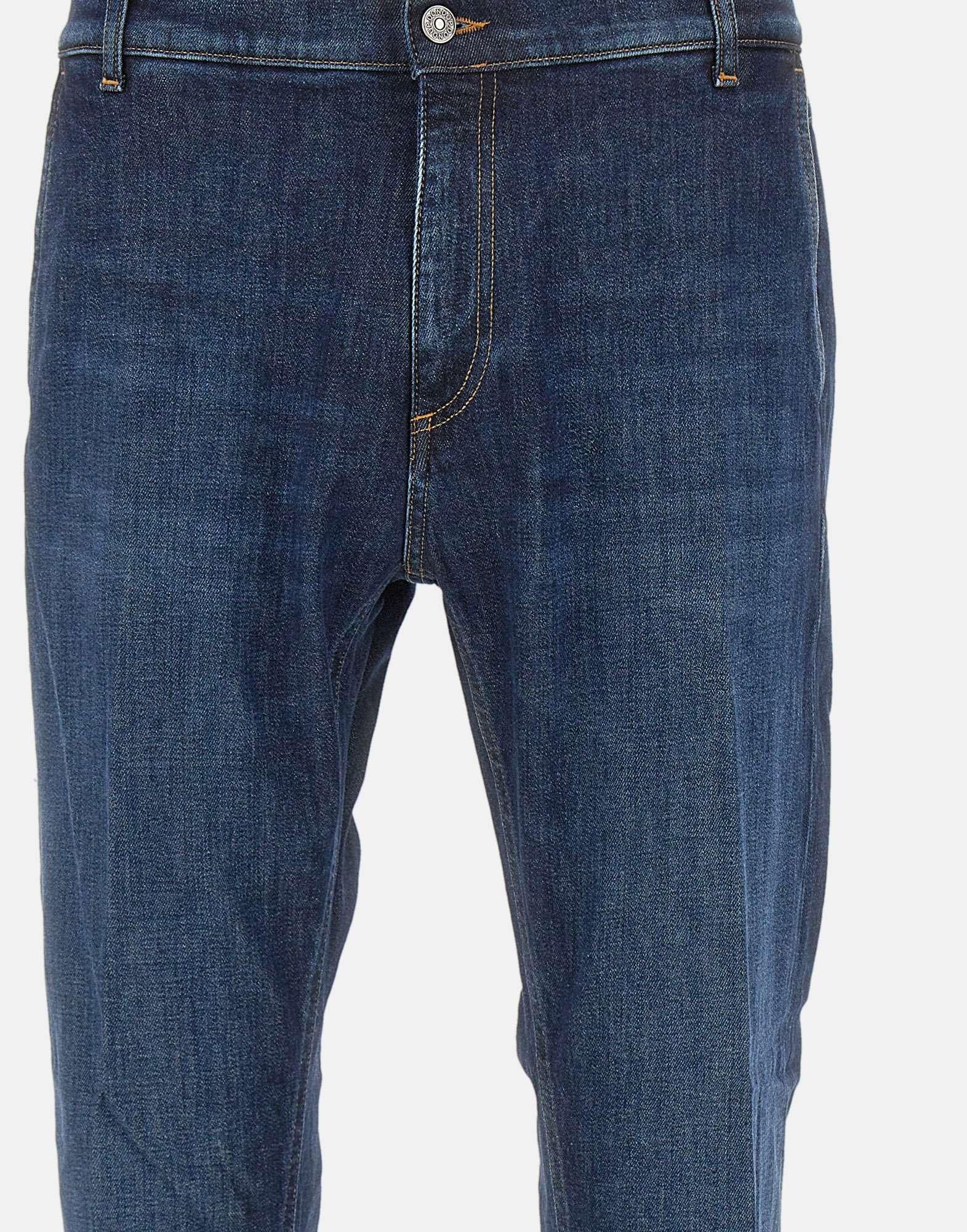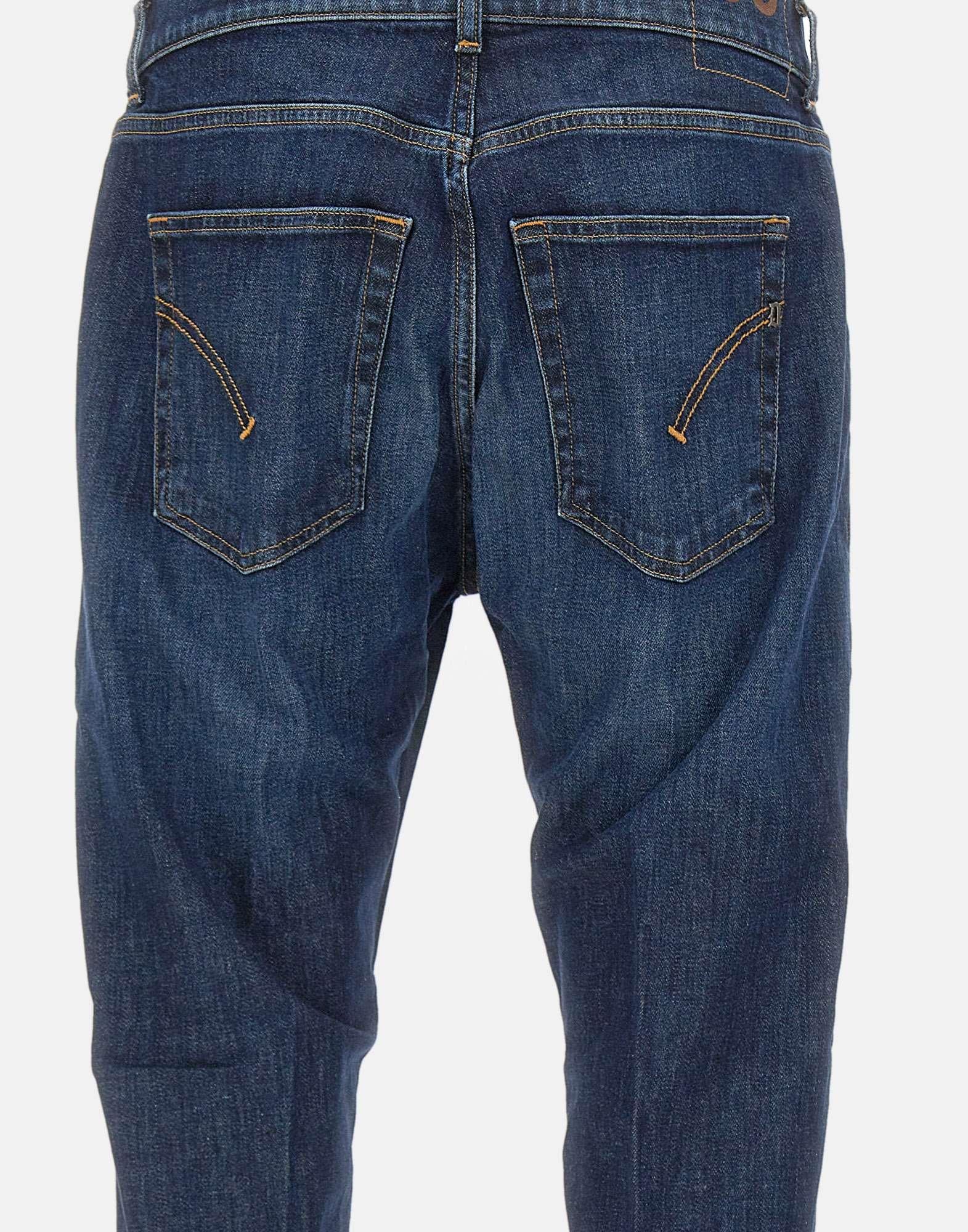Dondup "Jeff" jeans in recycled denim designed for those seeking a distinctive and modern look. Crafted in dark blue, these five-pocket jeans feature a carrot fit for comfort and a relaxed fit. The regular waist with belt loops allows for a custom fit. They feature a zip and button closure and exposed stitching. The dark vintage wash creates a worn-in effect, making them perfect for a streetstyle look. The Dondup logo on the back adds a classy and recognizable detail. Hem: 17cm, inside: 77cm.