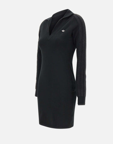 Adidas "LS Dress" in black, inspired by world of football. Made from 100% recycled polyester, it features a ribbed V-neck with collar, long sleeves, and iconic contrasting 3-Stripes down sides. Trefoil logo on chest. Slim fit that flatters figure.