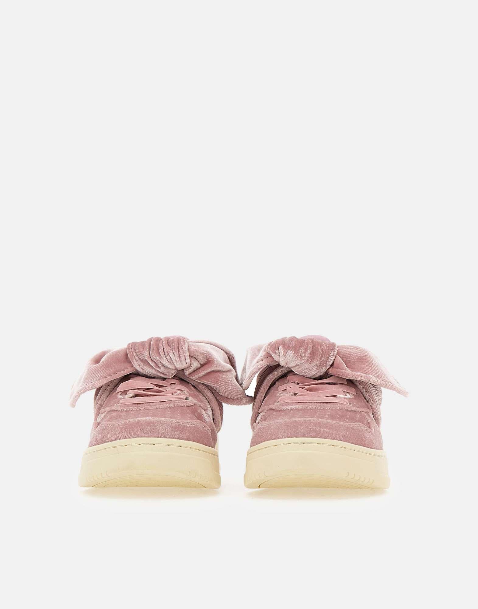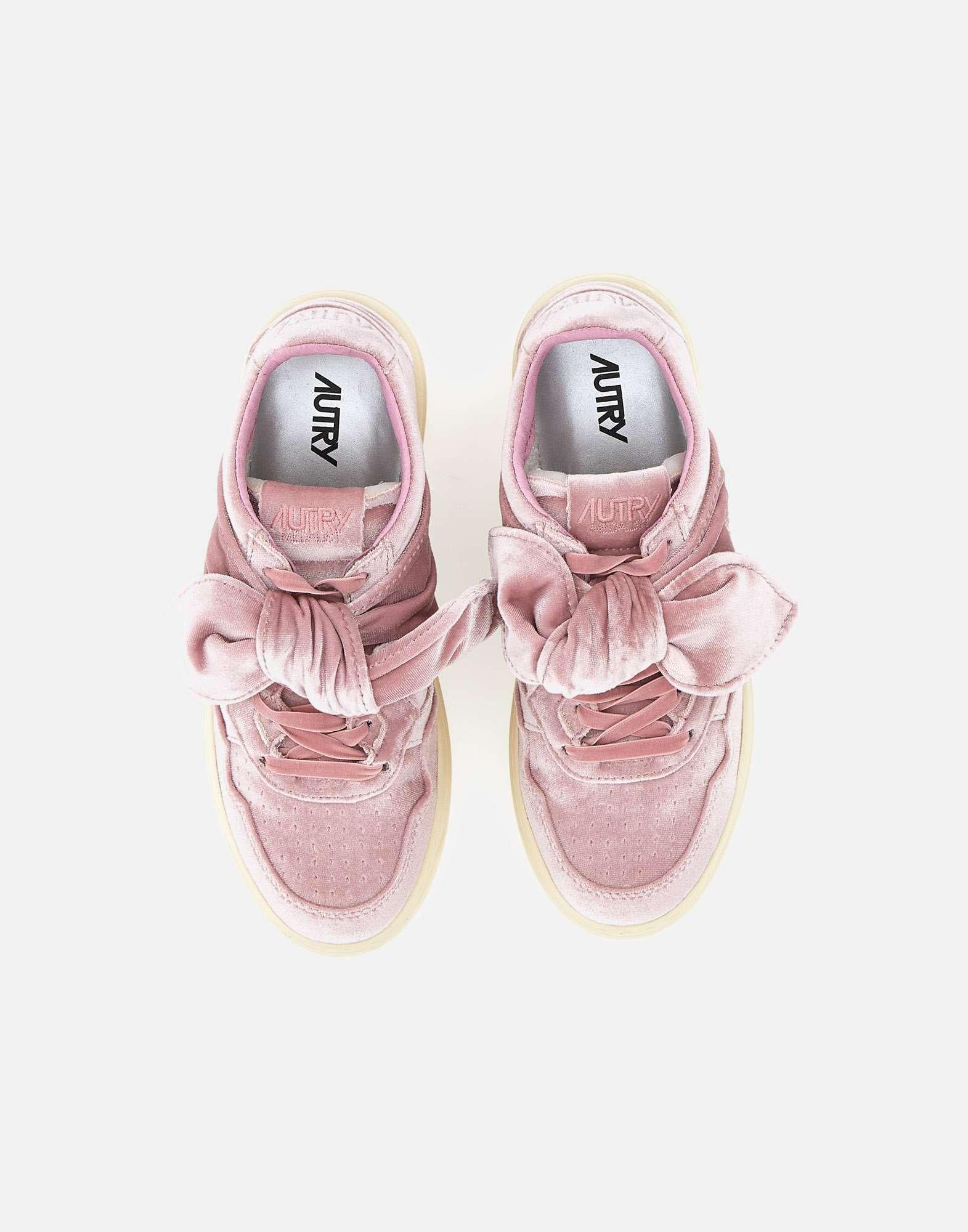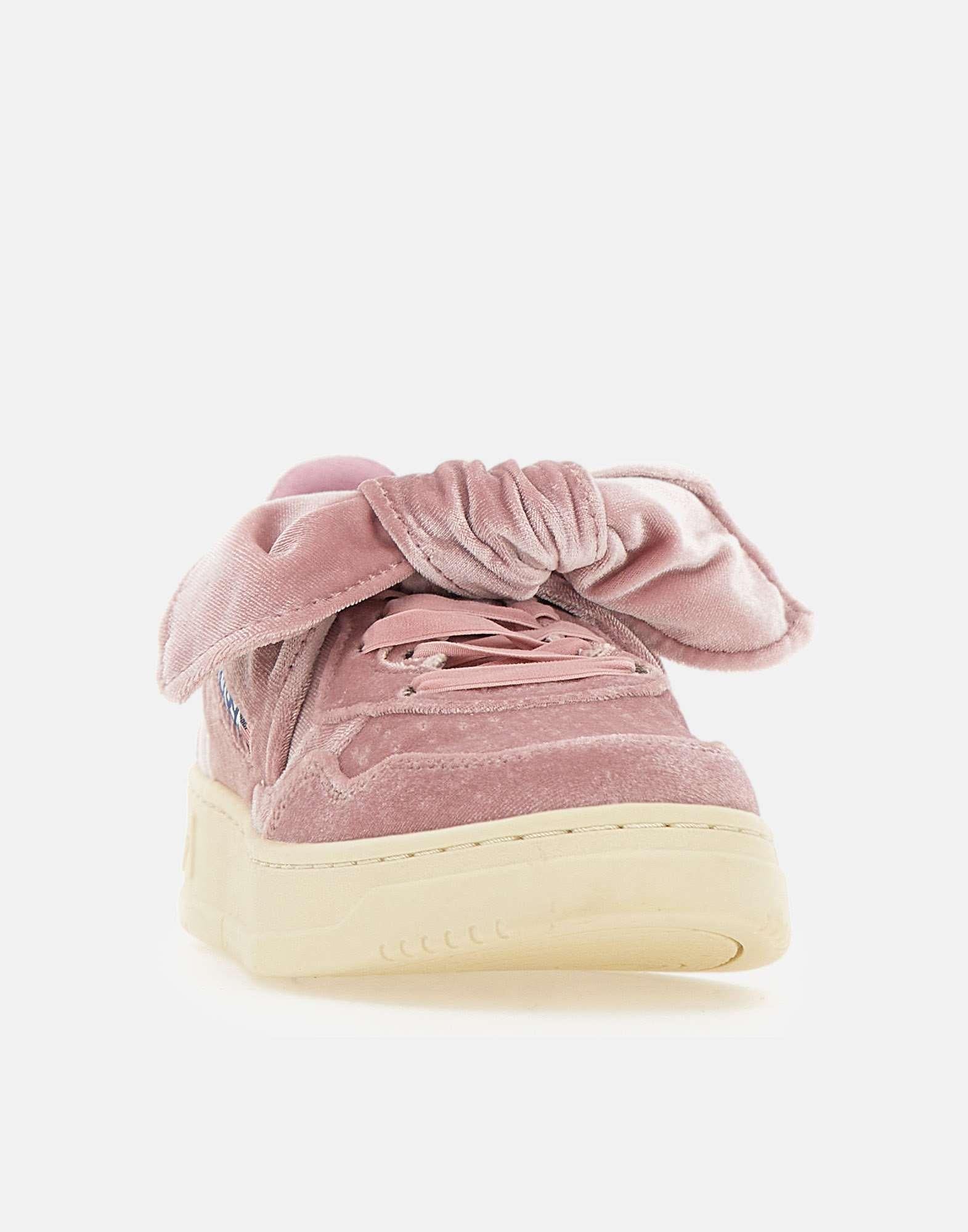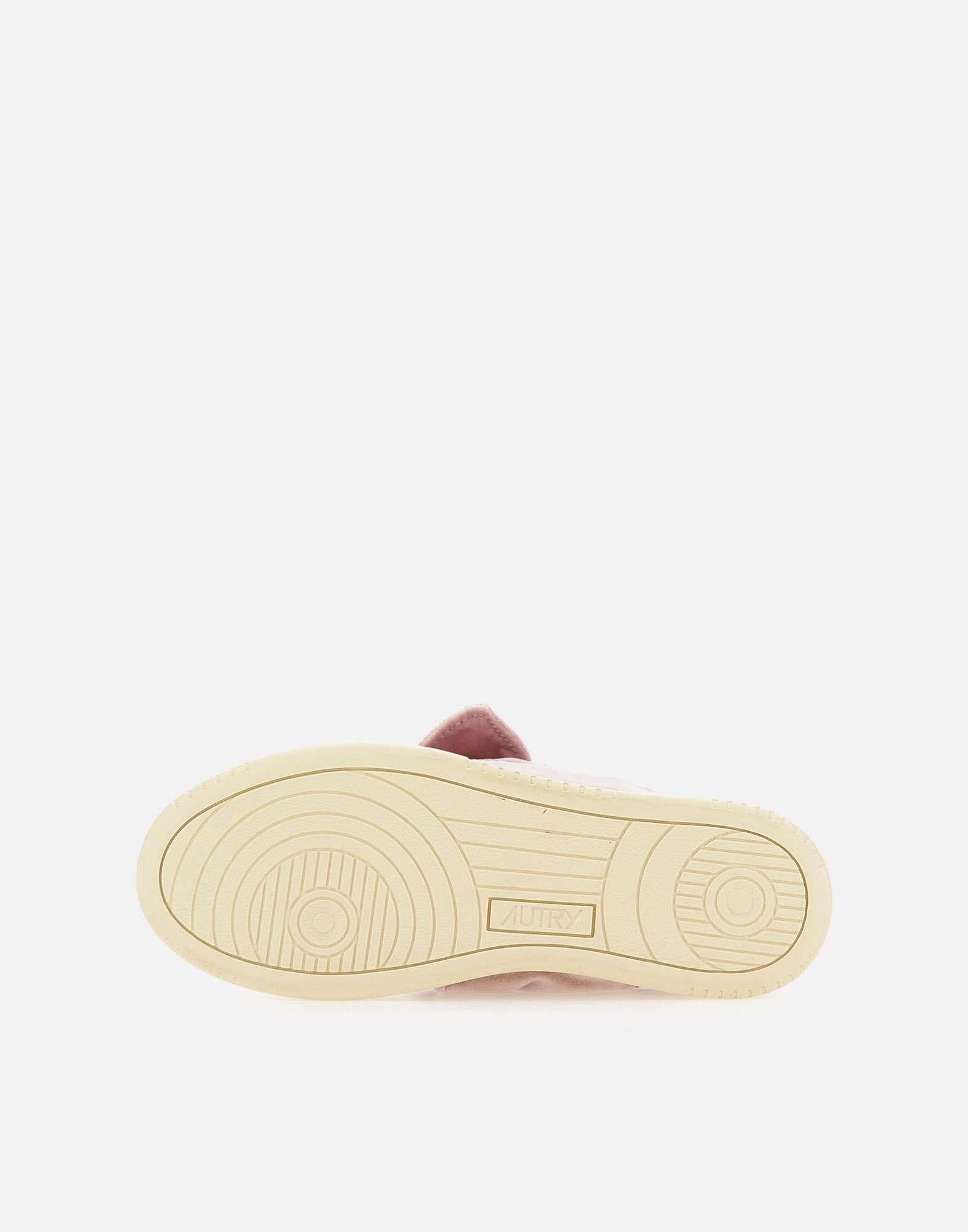 Women's Autry "Medalist Low Velvet Pink" sneakers from Bloom capsule collection, crafted in soft pink velvet for a refined touch. Featuring flat velvet laces, an embroidered label on tongue, jacquard logo, and a padded collar for enhanced comfort. The leather and cotton terry lining and 2 cm raised insole ensure a smooth, supportive fit. Finished with a rubber sole (height 2.5–3.5 cm). Regular fit, dust bag included.