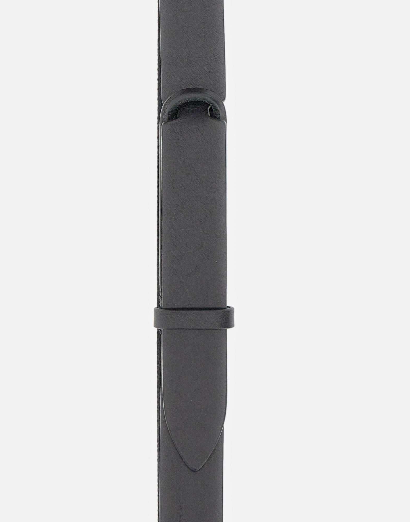 Orciani "Nobuckle bul" belt, black, in leather with a fabric backing, featuring a simple and modern design without a buckle. Featuring a sliding ring with a matte nickel-free finish, it is one size fits all, adjustable from size 42 to 56, ideal for a variety of wearability. 3 cm wide, expertly crafted. A versatile and refined accessory, perfect for casual or formal looks. Made in Italy.