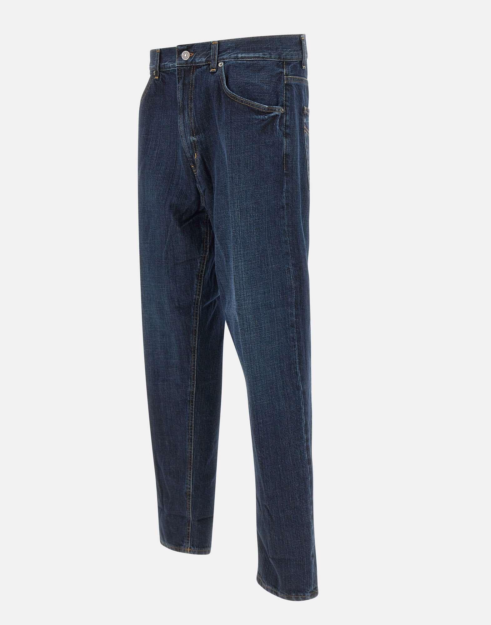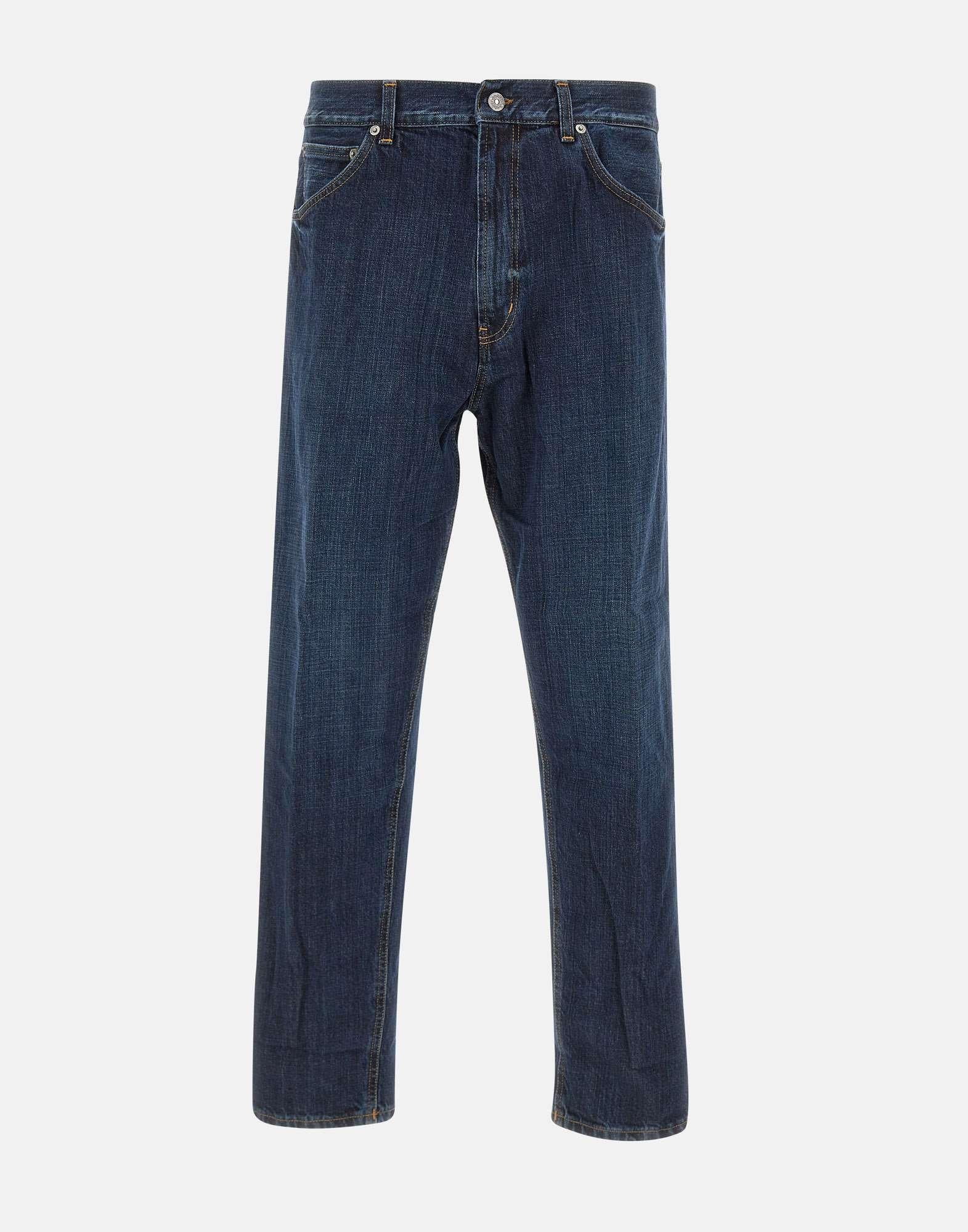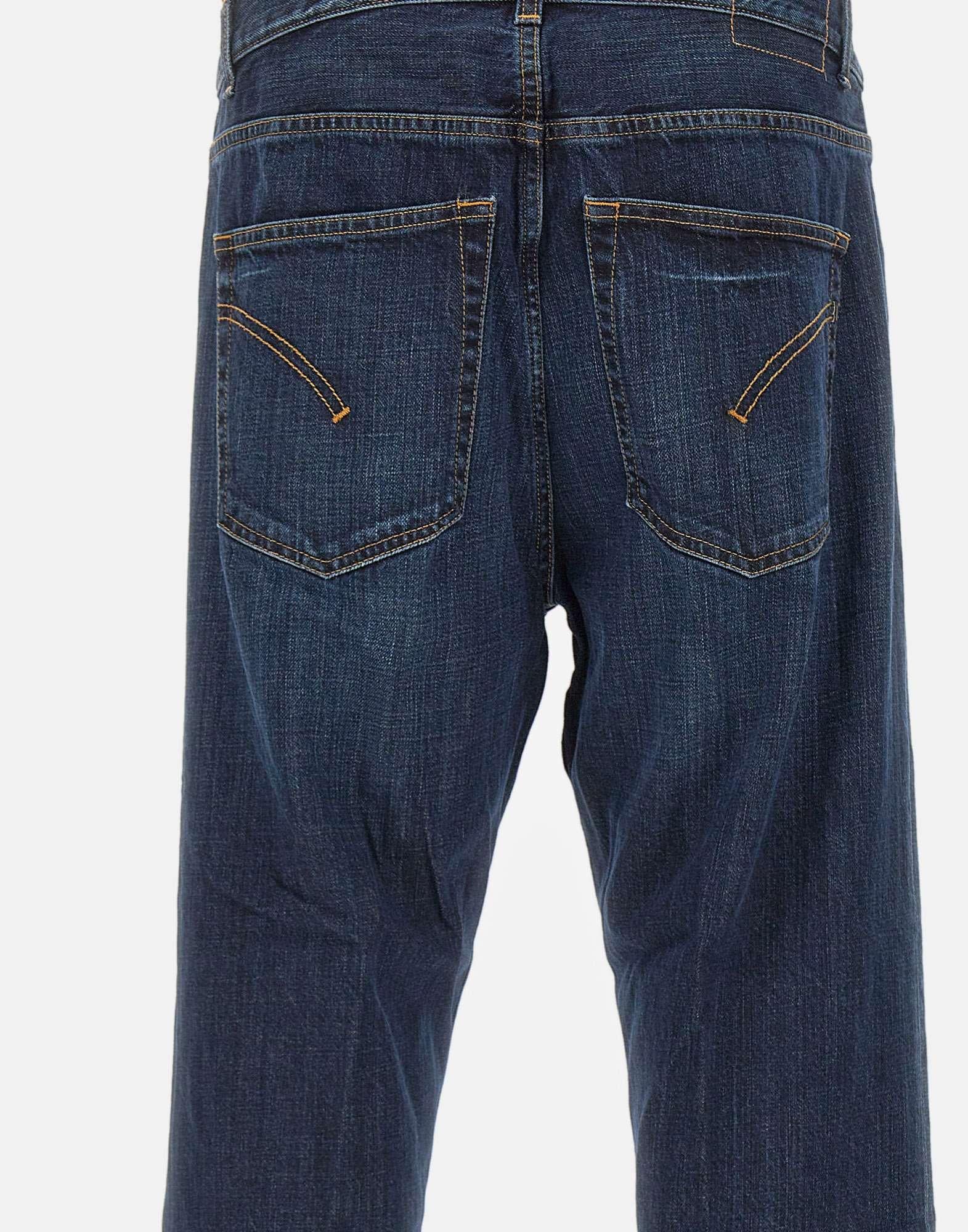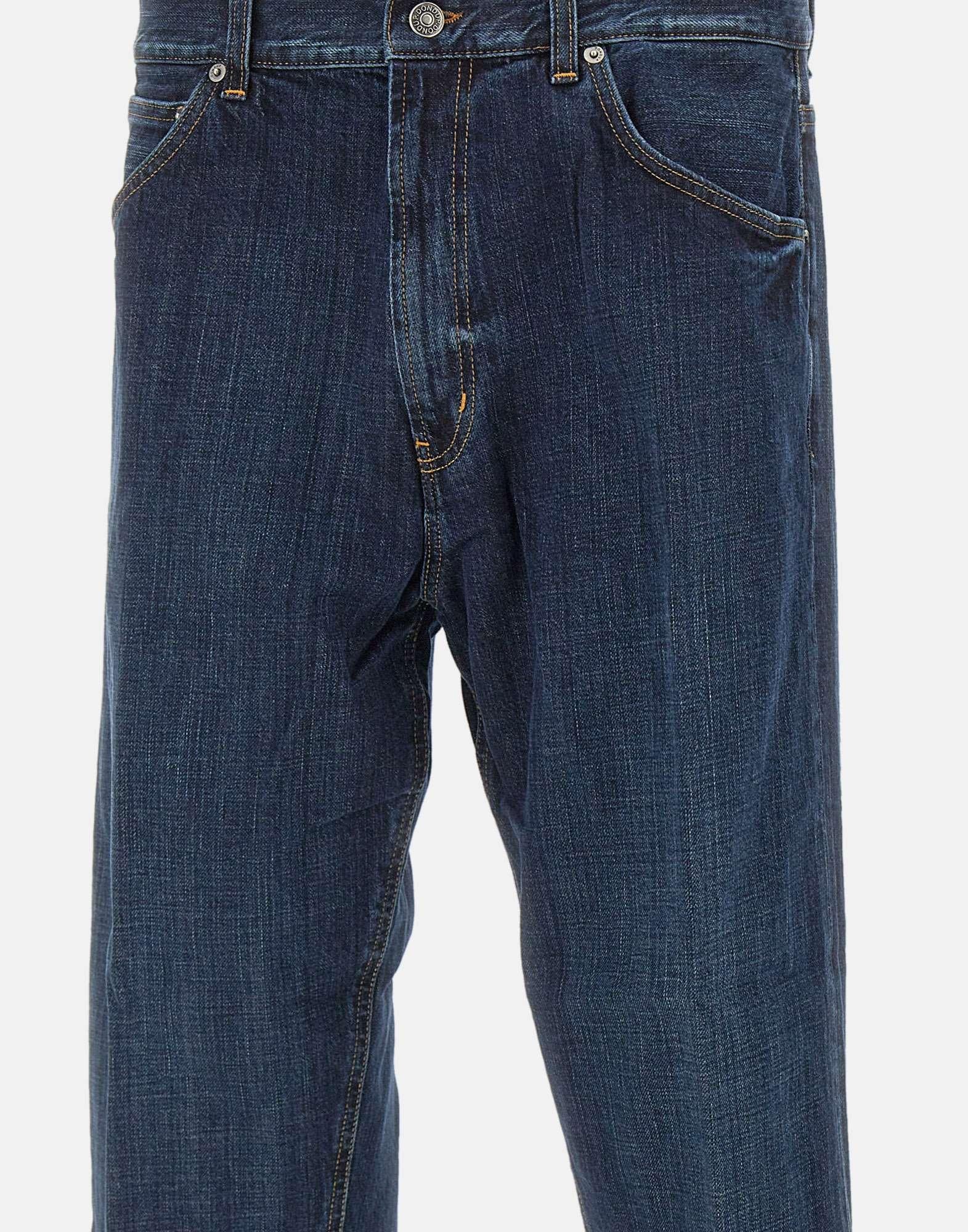 Dondup "Paco" jeans in recycled fixed denim designed for those seeking a distinctive and modern look. Crafted from 12 3/4 oz dark blue denim, these five-pocket jeans offer a loose fit that ensures comfort and a relaxed fit. The regular waist with belt loops allows you to adjust the garment to your shape. Zip and button closure and exposed stitching. The dark vintage wash creates a worn-in effect, making them perfect for a streetstyle look. The embroidered Dondup logo on the back adds a classy and recognizable detail.