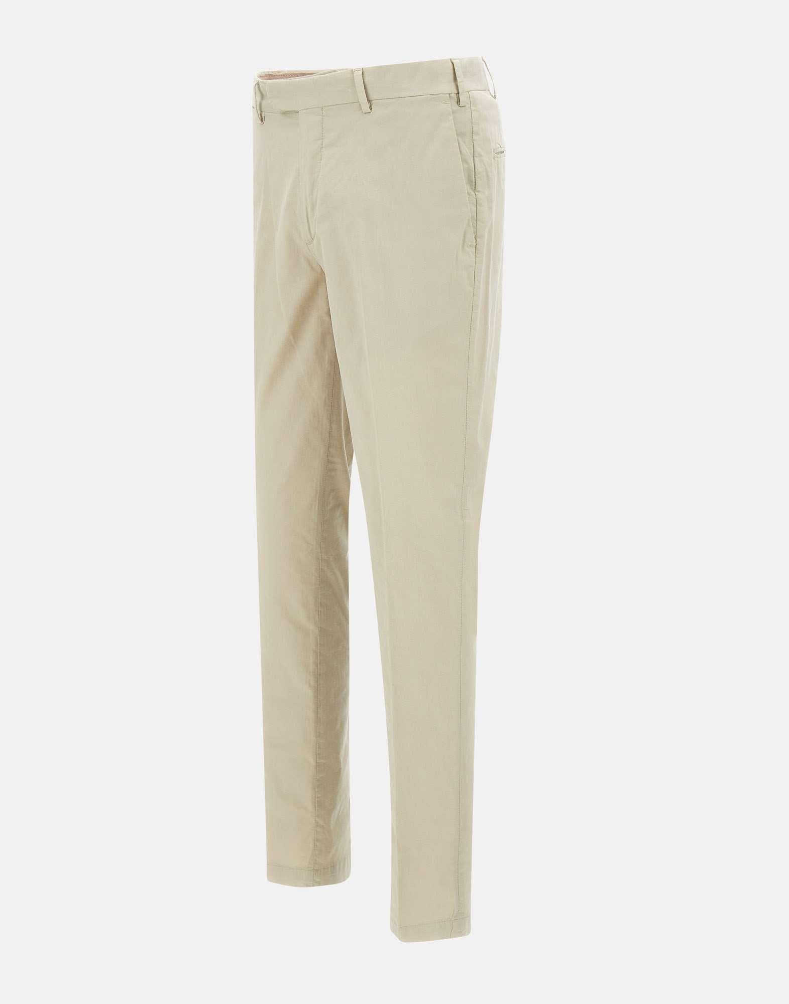 Devore Incipit men's "Dvr3", putty color, giza cotton and stretch silk trousers, luxurious fabric to touch and wear, button and zip fly, straight leg with 17cm hem, belt loops, French pockets, single back pockets, slim fit, made in Italy