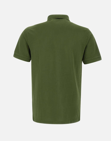 Stretch cotton piquet "Polo cold dye" Sun68 men's, olive green, garment-dyed fabric, short sleeves, lining with floral print, classic collar closed by logo buttons, tone-on-tone embroidered logo on chest, mini slits at hem, ribbed edges, regular fit.