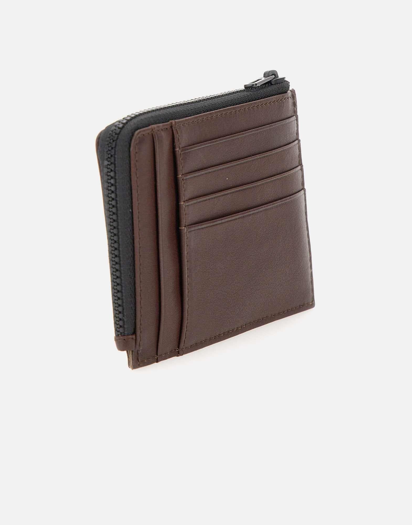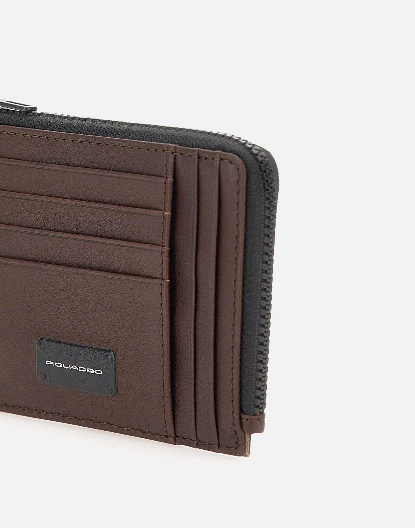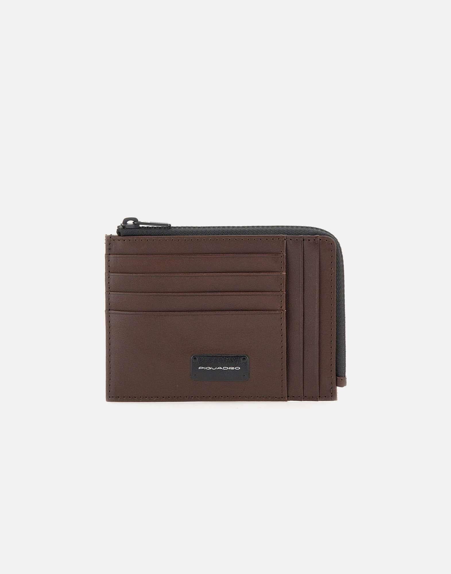 Mens leather wallet Piquadro, dark brown head, coin compartment with zip, multi-compartments for cards, front logo, RFID fraud protection. Dimensions: 9 cm height,12cm length, depth 1cm. Weight:47gr.