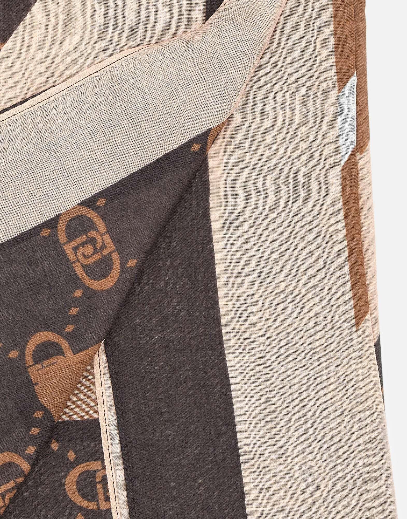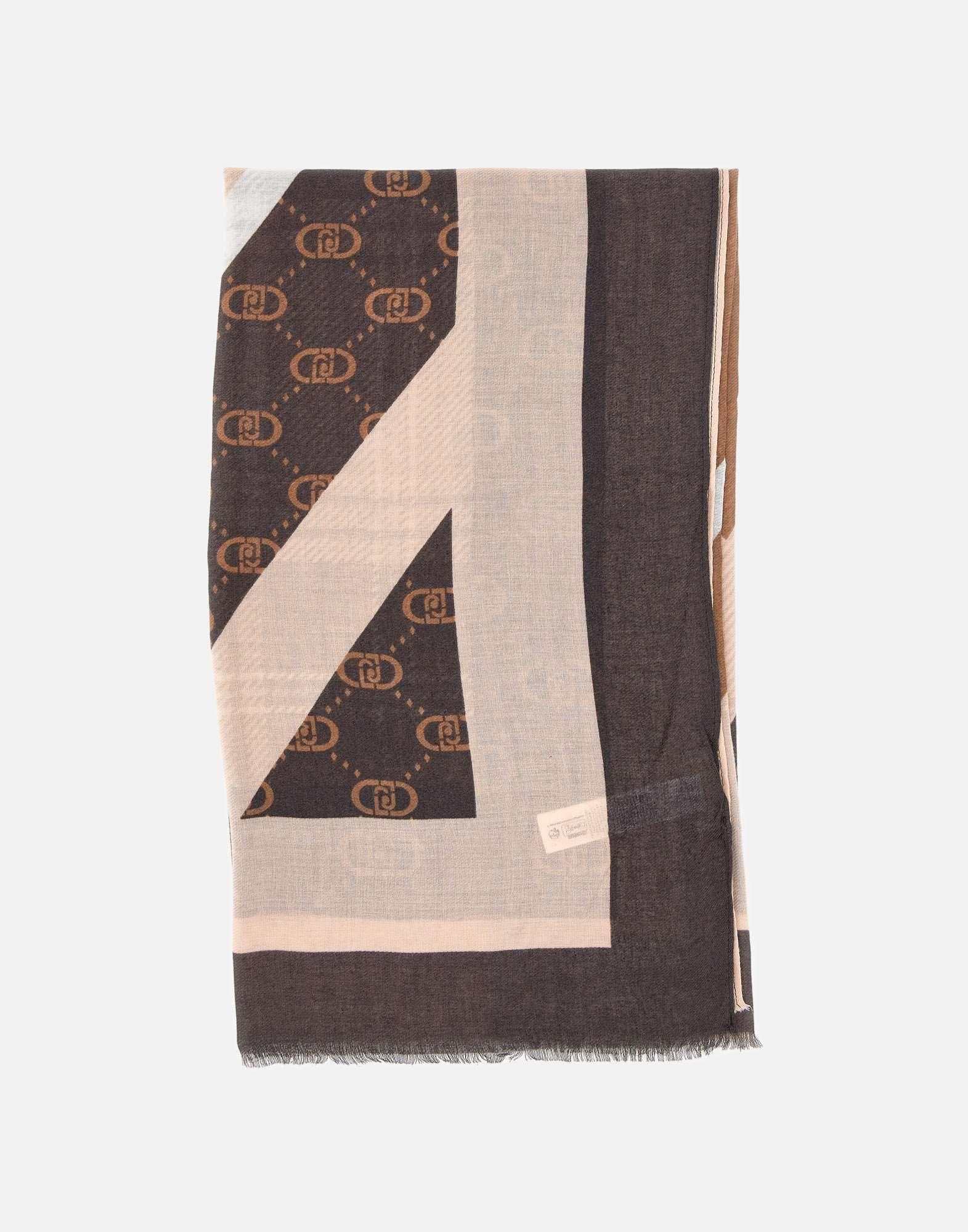 Liu Jo "Better" stole in brown and pink with an all-over check print and logo. Finished with fringed edges for a casual-chic touch, it comes with a matching logo clutch bag. Dimensions: 70x180 cm. Part of "Liu Jo Better" line, which promotes more sustainable materials and processes.