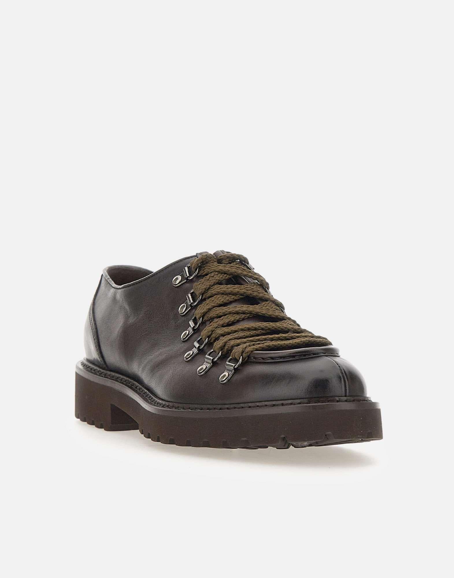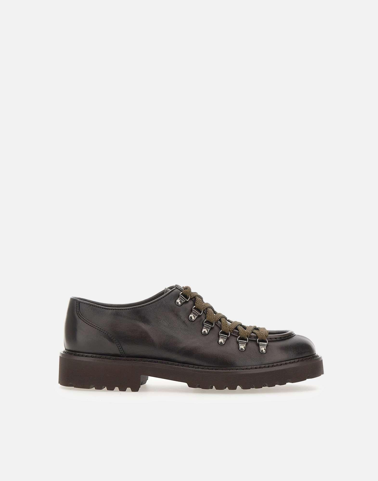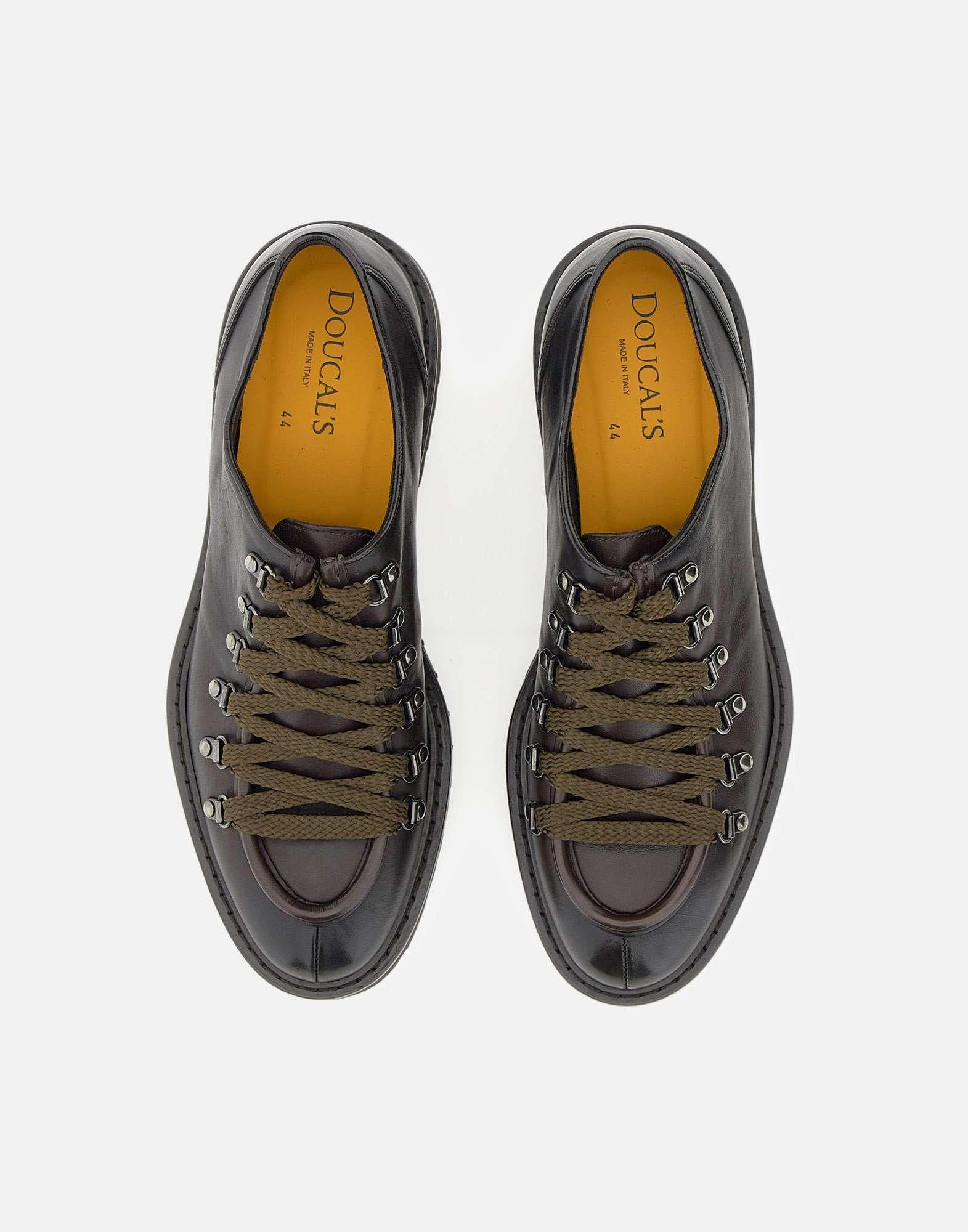Doucal's "Triumph" lace-ups combine Italian craftsmanship and contemporary design. Crafted from dark brown leather, they feature a lace-up closure with smoked metal eyelets, a rounded toe, and exposed stitching. The tonal rubber lug sole ensures grip and durability. 4cm heel. Fabric case included. Made in Italy. Regular fit. Spare laces included.
