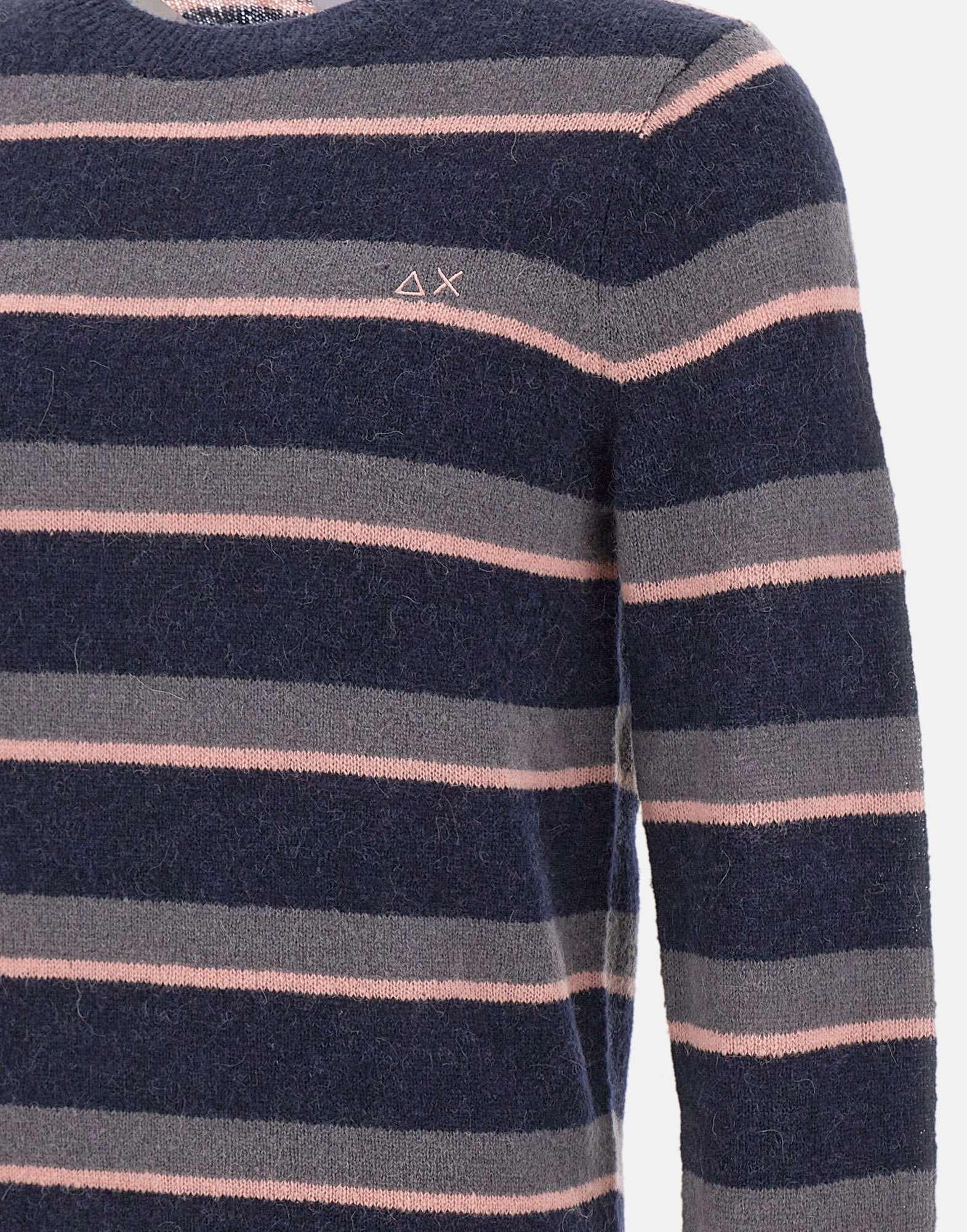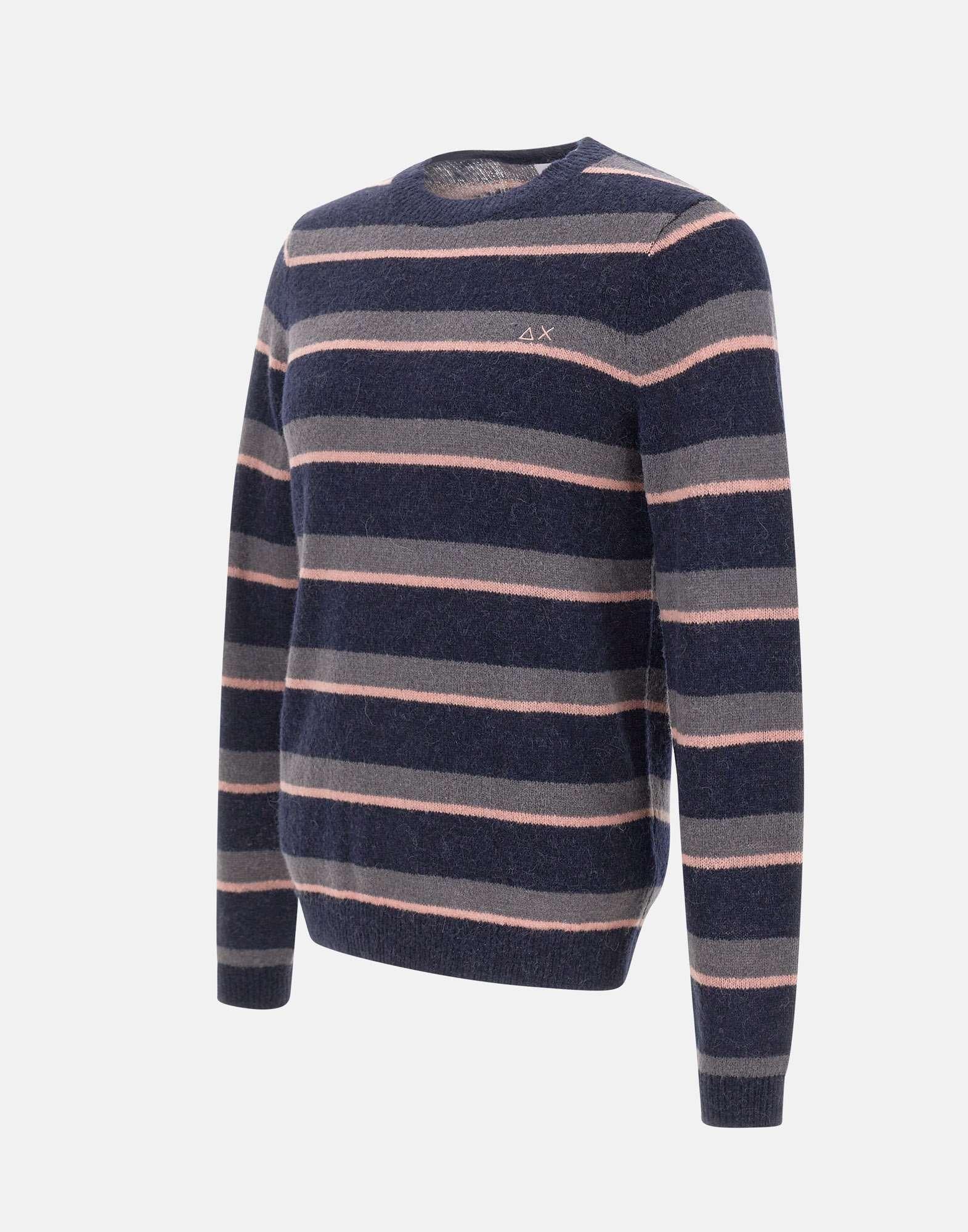 Mens Sun68 "Stripes Alpaca" sweater in a wool and alpaca-blend yarn, soft and warm to touch. Features a striped pattern, crew neck, long sleeves, and ribbed trims for a comfortable fit. The embroidered logo on chest adds a signature finish. Regular fit, ideal for casual yet refined looks.