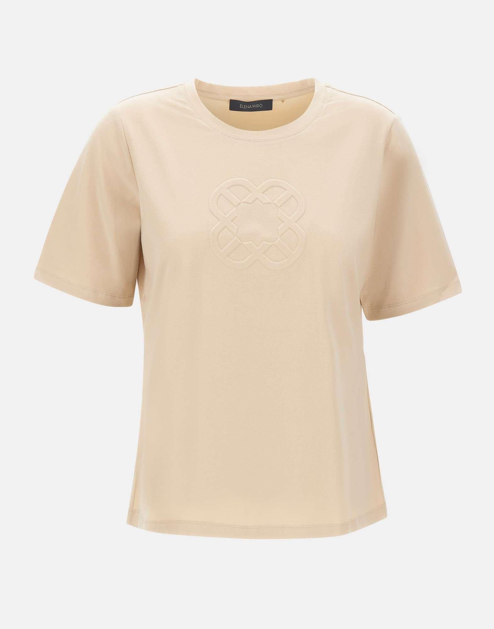 Elena Miro women's t-shirt crafted from beige cotton jersey with a clean, essential cut. It features a front monogram logo made with an embossing technique, adding a refined touch to the minimalist design. Finished with a crew neck and short sleeves. Regular fit, perfect from morning to evening.