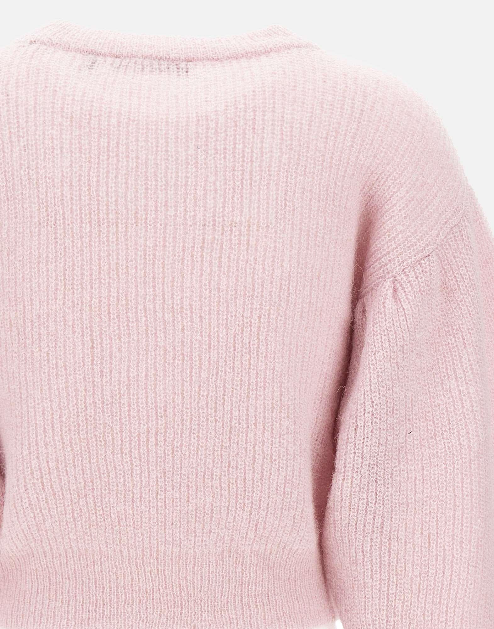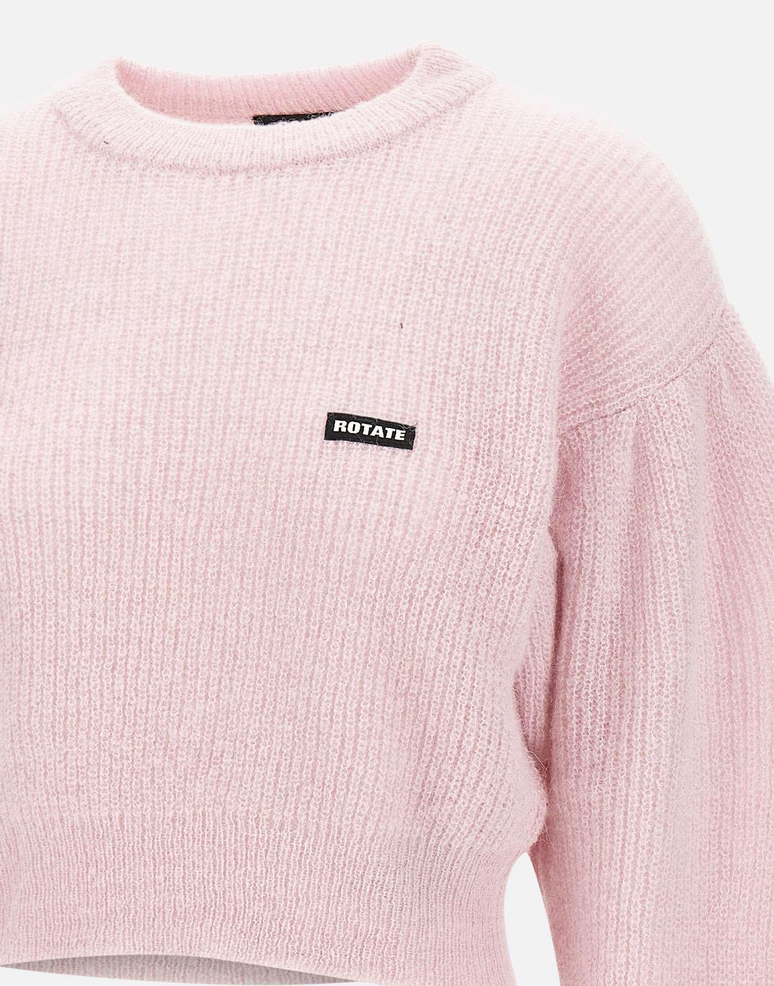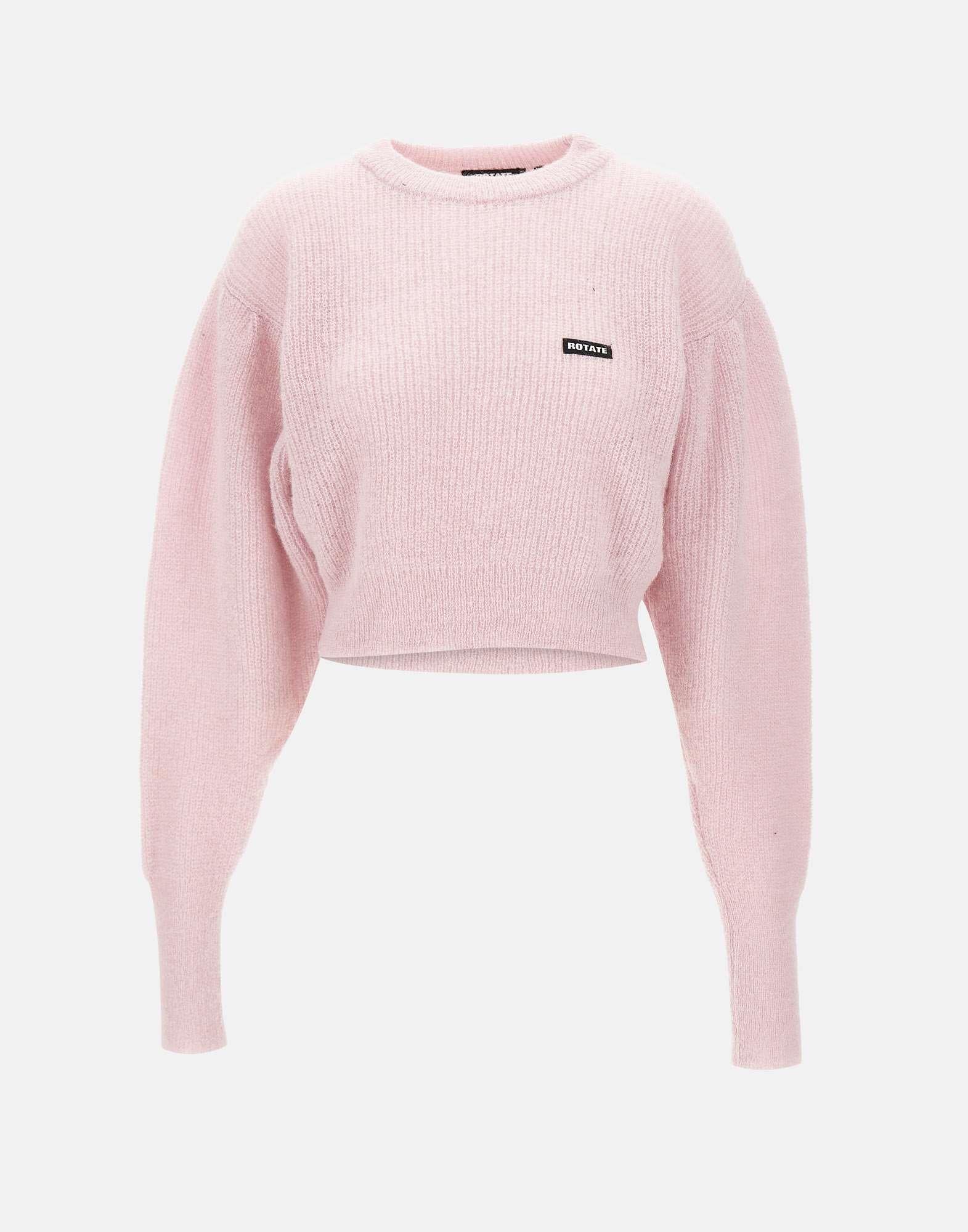 Rotate Birger Christensen "Knit Puff Crewneck", pink, crew neck, long, voluminous puff sleeves, ribbed edges, fitted cuffs, logo label on chest, regular fit