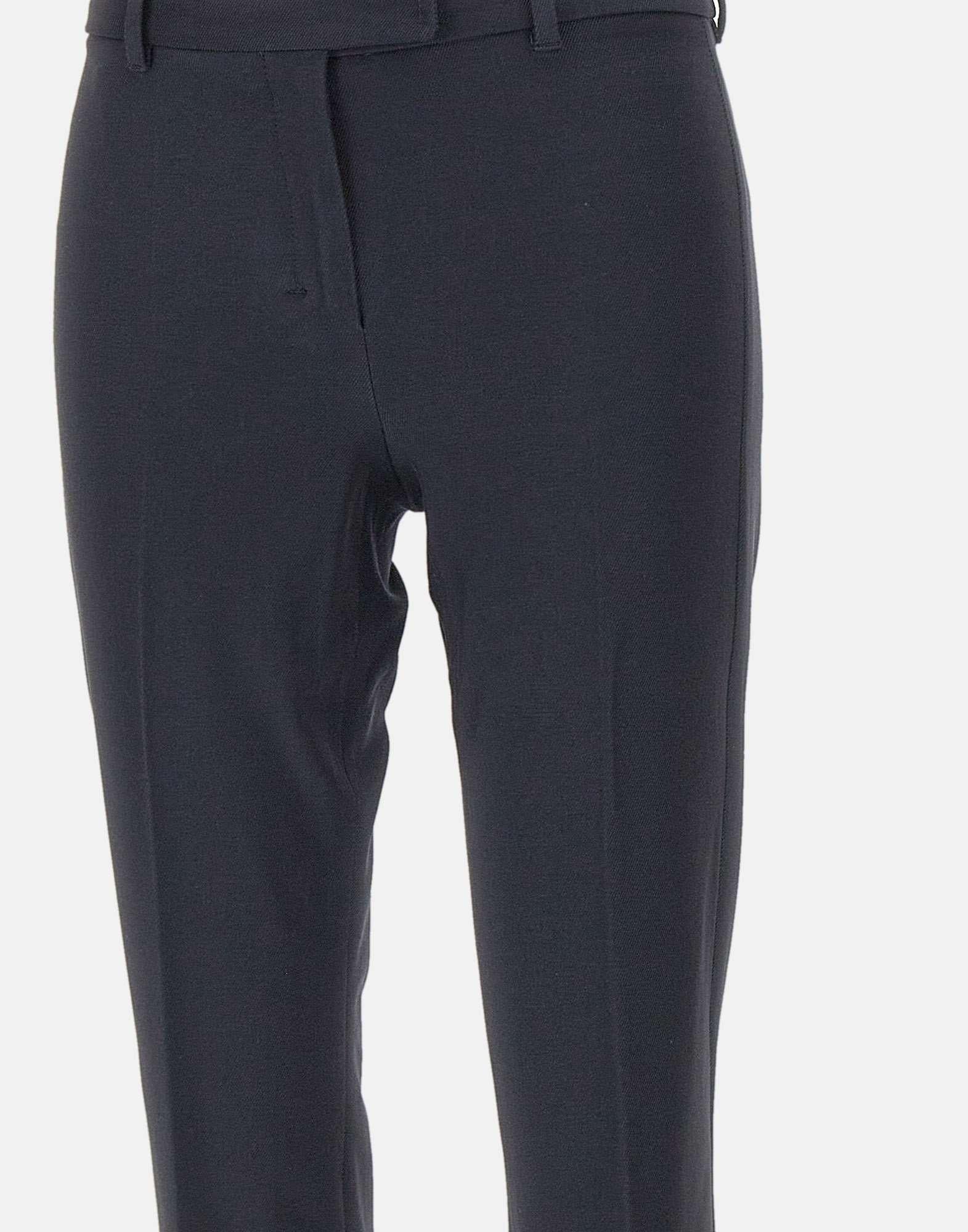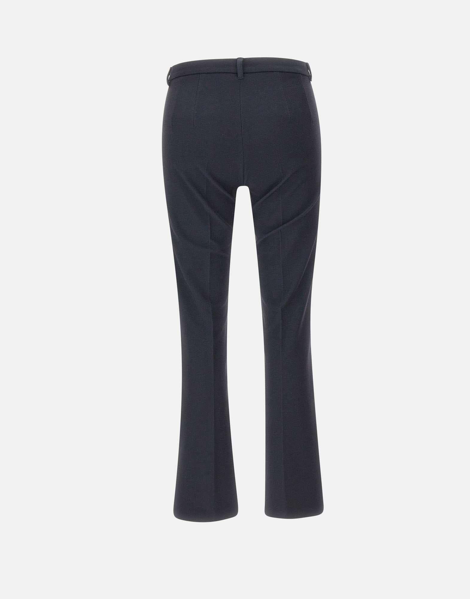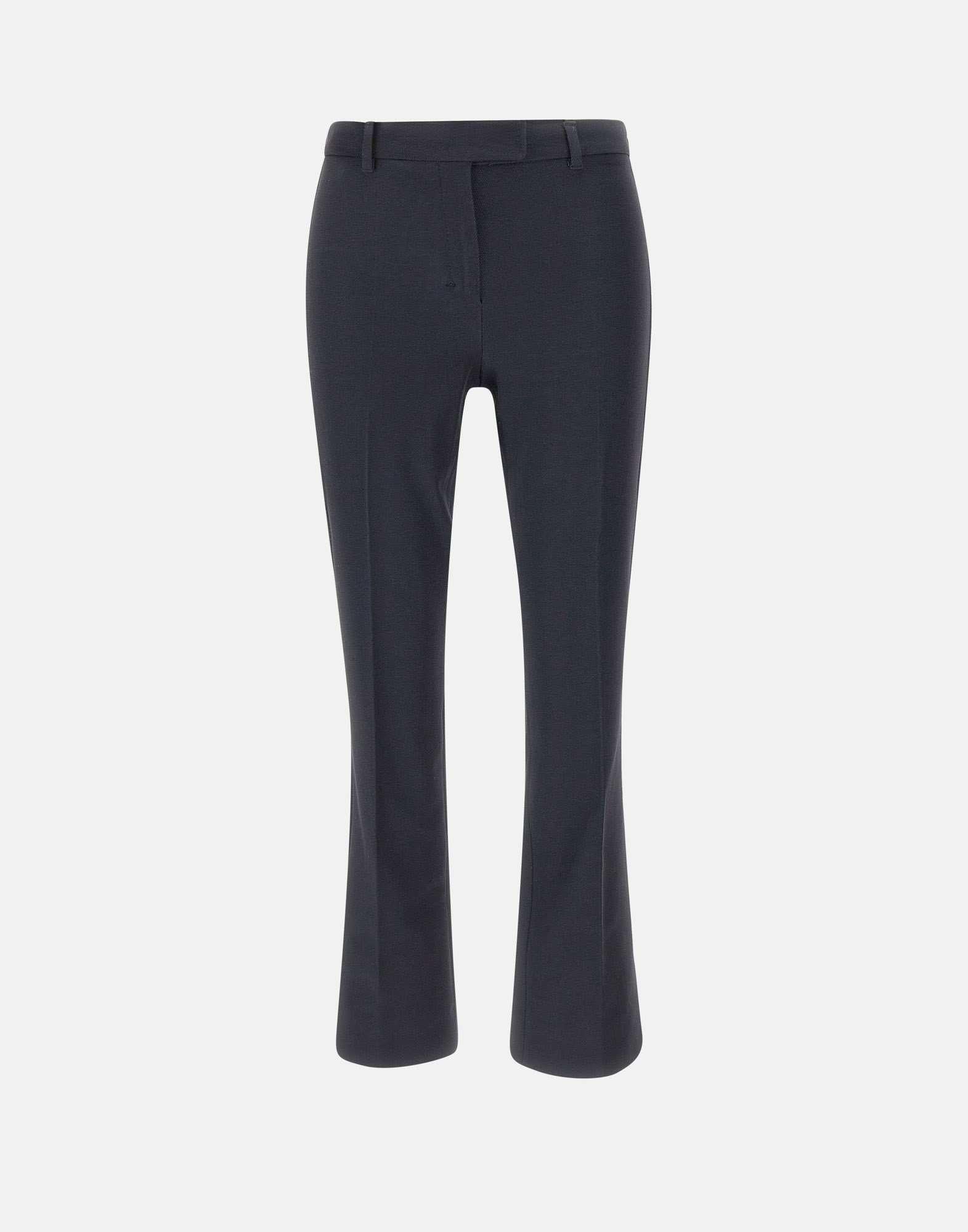 'S Max Mara "Umanità" trousers, blue, stretch cotton blend fabric, tailored construction, slightly flared line at the bottom, high waistband fastening, zip with flap and hook, ironed crease, belt loops, darts sewn at the waist on the back, 18cm hem, inside leg 70cm (size 40), slim fit