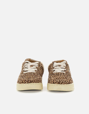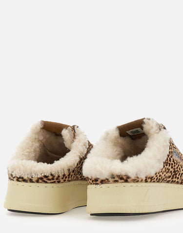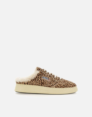Autry women's mule sneakers in animalier pony hair, a streetwear reinterpretation of the classic Medalist model. Featuring a relaxed sabot silhouette with an exposed heel, they combine contemporary aesthetics with casual comfort. The wide pony skin upper ensures a snug fit, while the rubber sole ensures stability and durability. This original design blends urban style with sophisticated details, perfect for casual looks with character or unexpected transitional outfits.