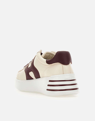 Hogan "Rebel 564" women's sneakers, cream with burgundy details, nappa upper, wavy Hogan monogram on side, 5mm memory foam insole,