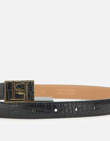 Elisabetta Franchi synthetic material with crocodile print effect leather belt, black color, gold buckle with double C logo, width 2cm, regular size.