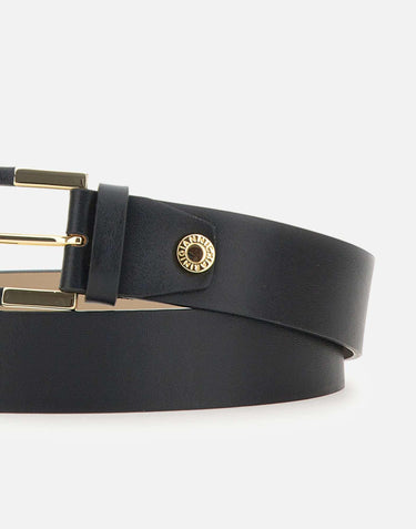 Gianni Chiarini smooth leather belt, black color, two-tone black and gold buckle, width 3.5cm, one size, made in Italy.