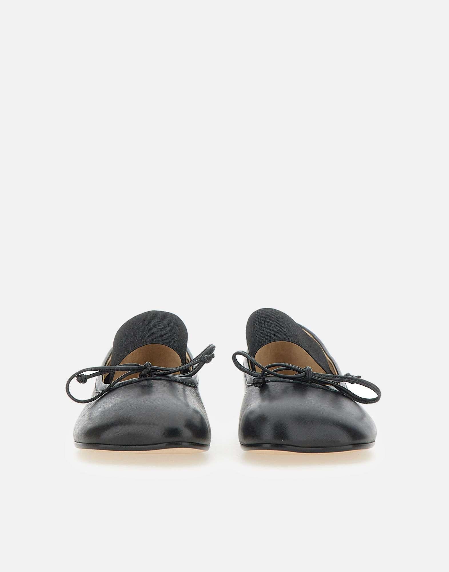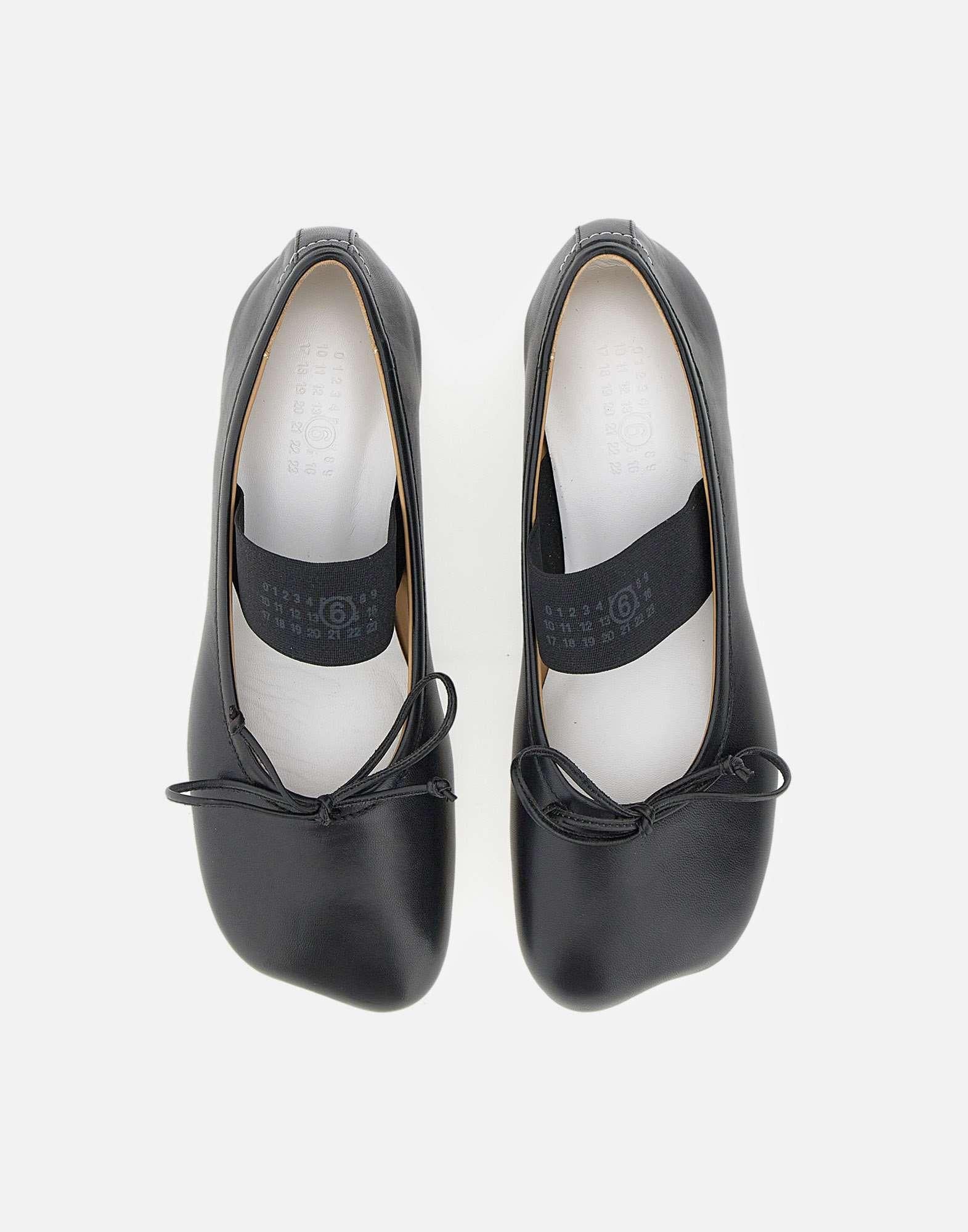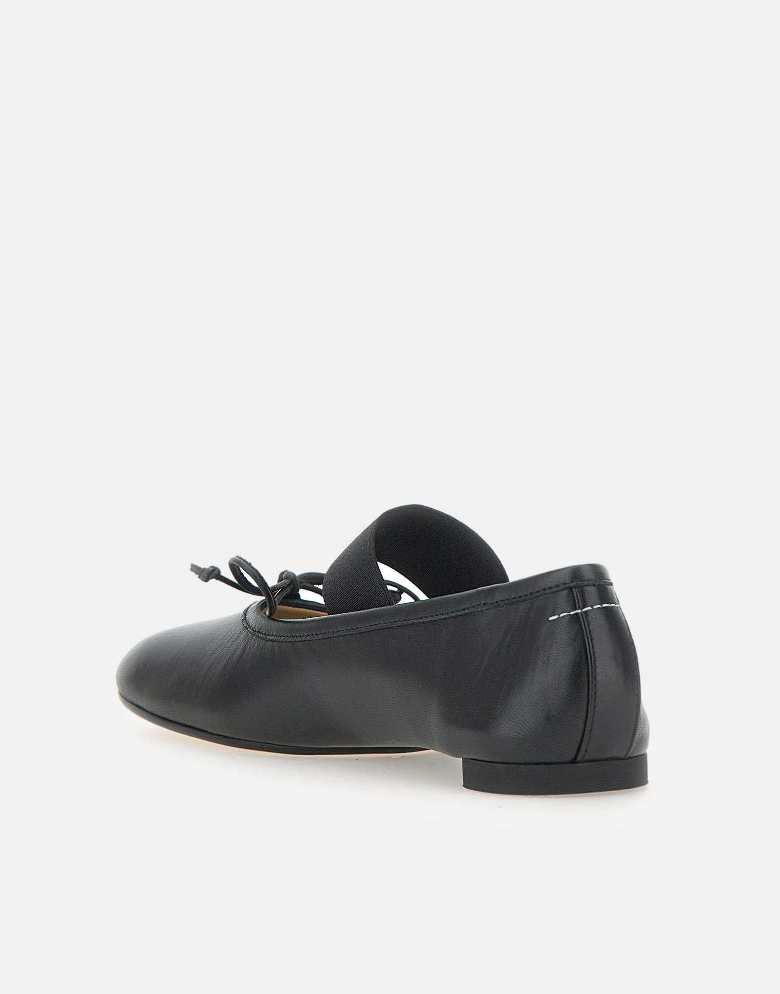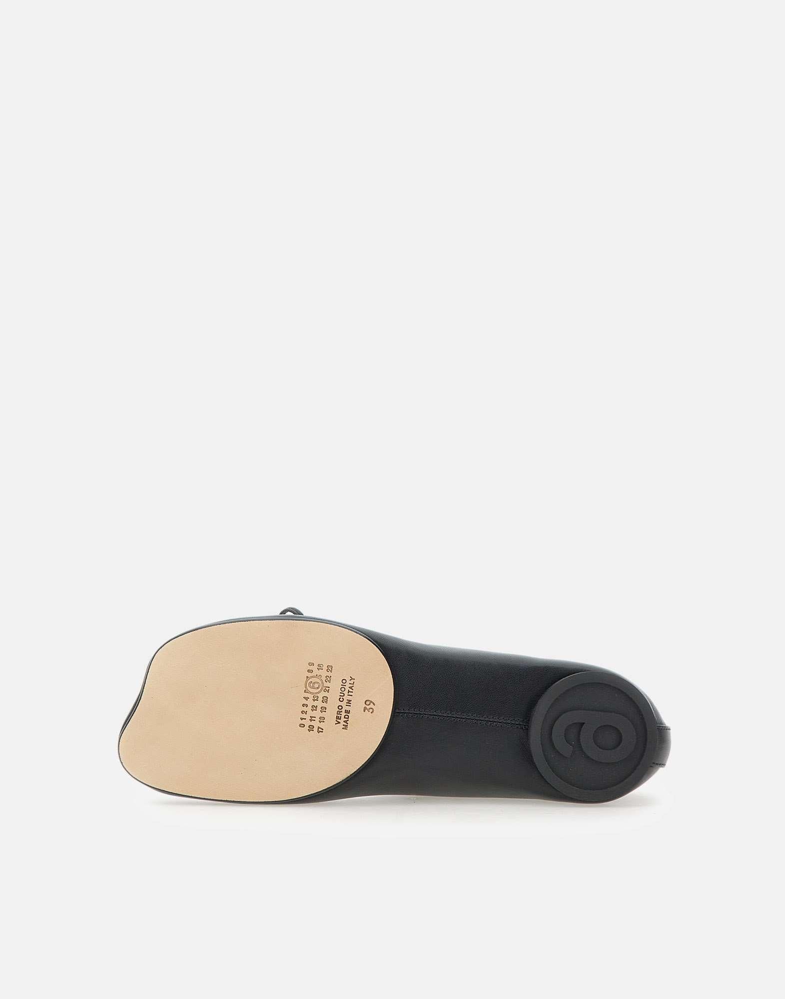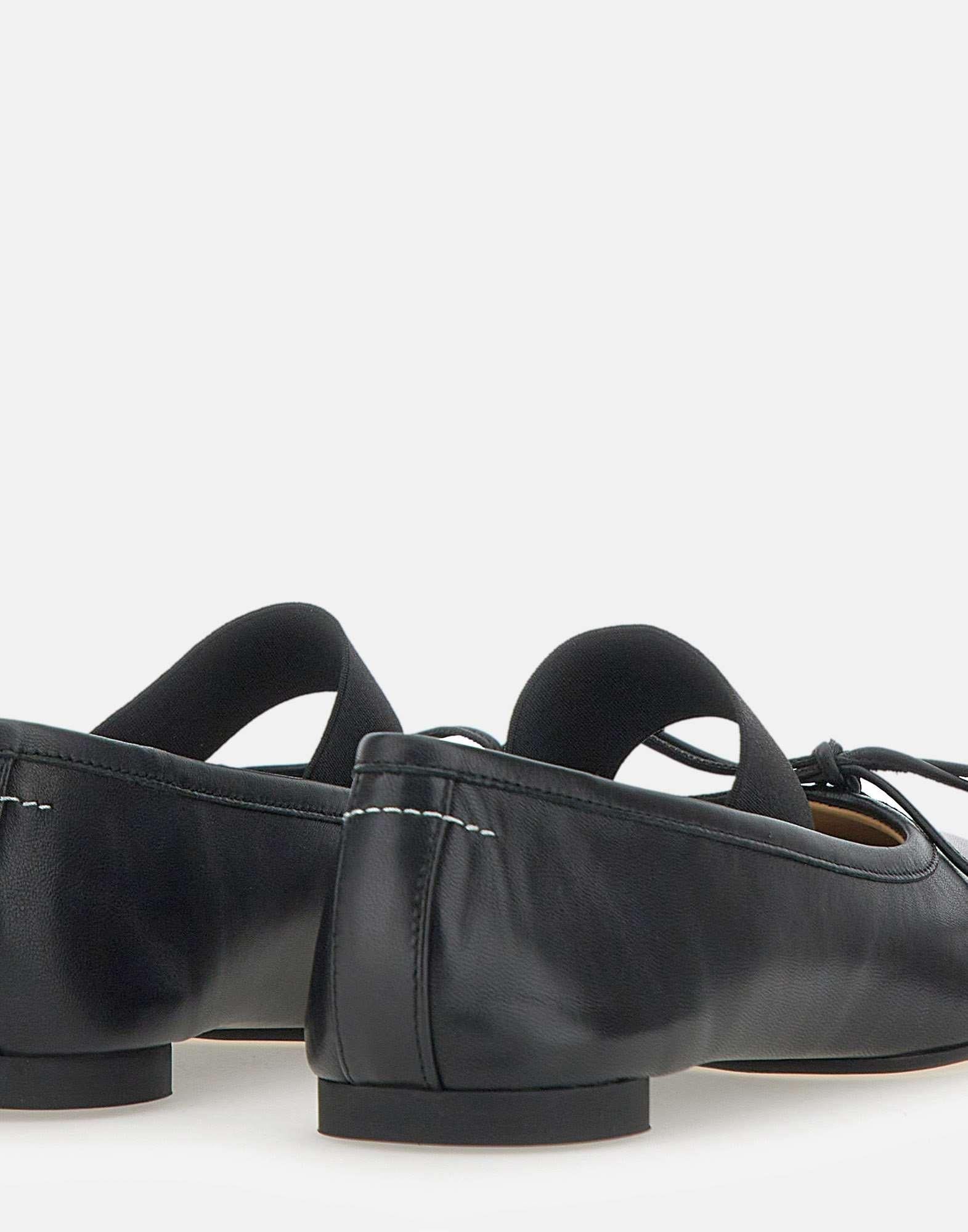 MM6 Maison Margiela "Anatomic Numeric Ballerinas", black colour, made of very soft leather, MM6 anatomical shape, 1 cm cylindrical heel, elastic band on the foot with numeric signature, small bow on front, white stitch line on back, leather sole, regular fit, made in Italy