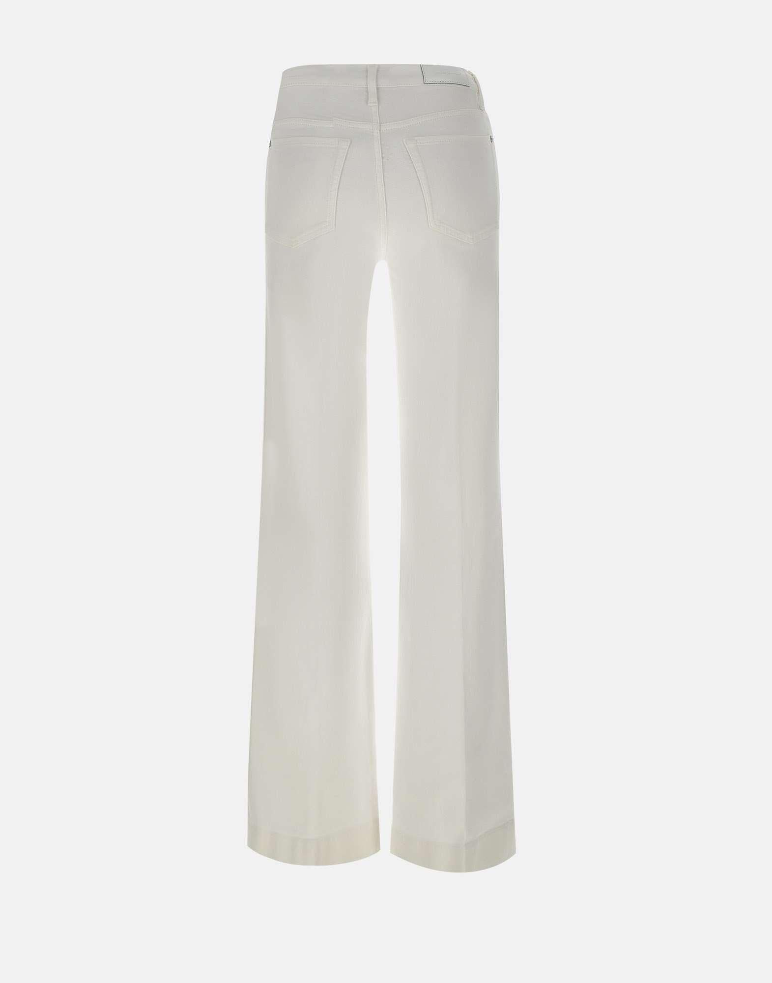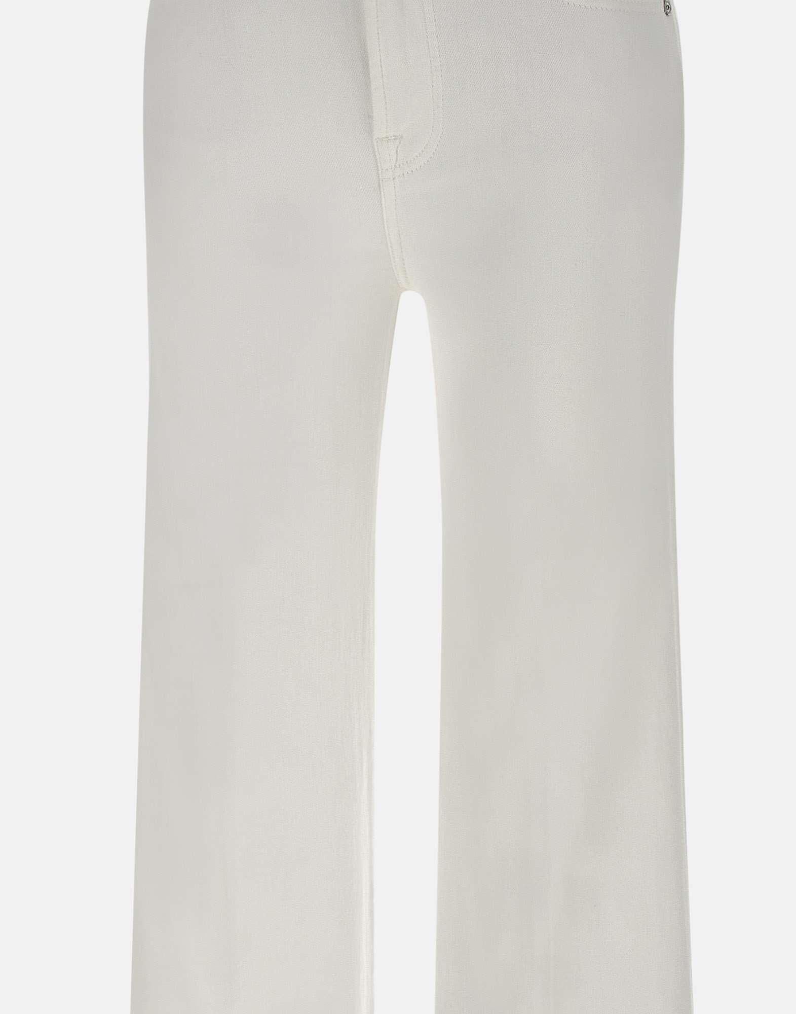 7 For All Mankind "Modern Dojo" jeans, Soleil wash, white colour, Luxe Vintage denim fabric, flared with high waist, 2000s icon, wide leg with 27cm bottom and 6cm hem, zip and jewel button closure, five pocket model, logo on back, slim fit. Inseam approx.: 34 1-2 in - 88 cm.