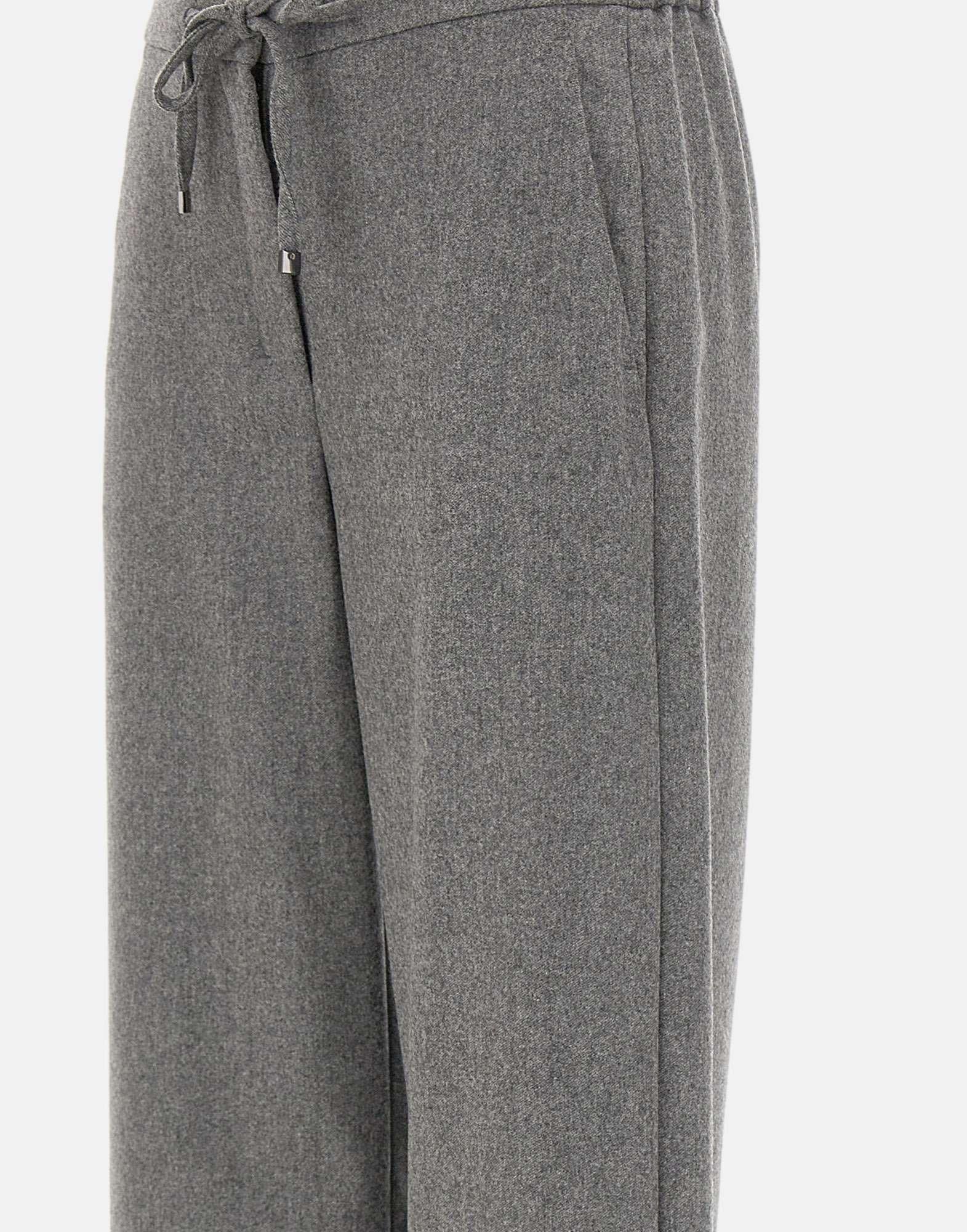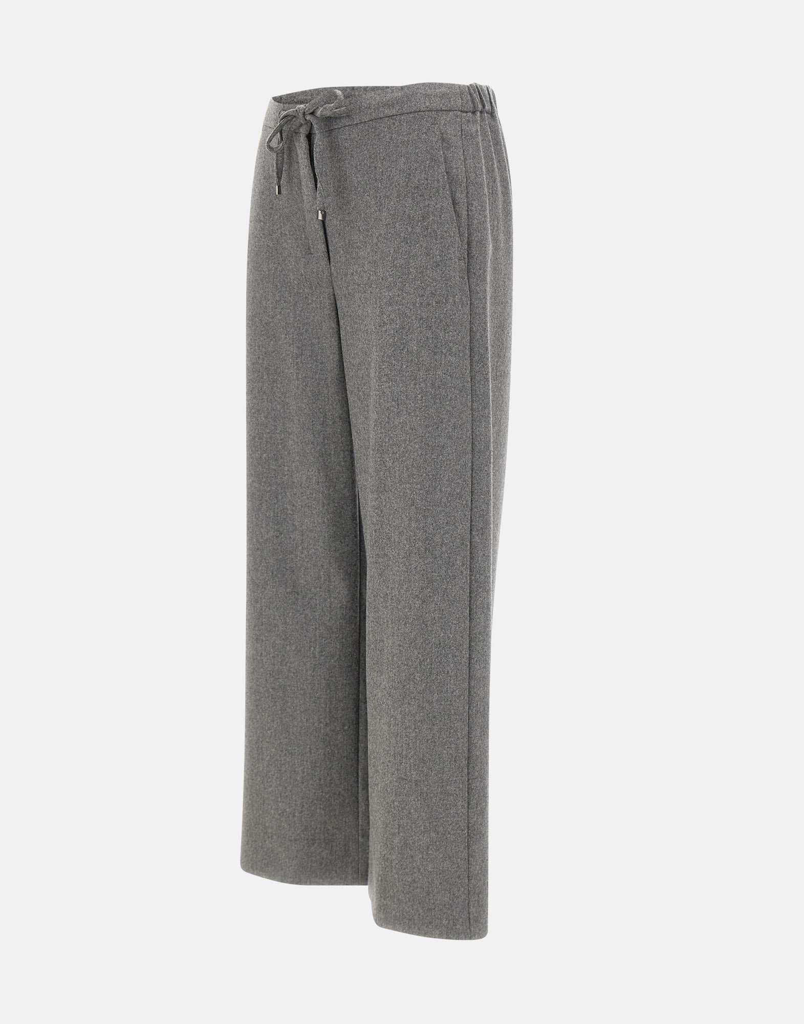 'S Max Mara "Floria" trousers in soft stretch wool flannel, grey. Jogger-style with elasticated waistband and adjustable drawstring finished with silver-tone tips. Slant side pockets and 26 cm hem. Length 102 cm, regular fit. A refined choice for relaxed yet polished outfits.