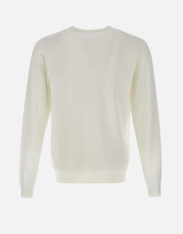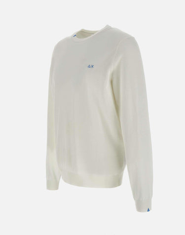 Cotton "Sweater basic" men Sun68, white, long sleeves, crew neck, ribbed edges, embroidered logo on chest, regular fit
