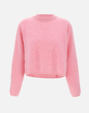 Soft Goat women's "Brushed crewneck" sweater, cyclamin pink color, 4-ply brushed cashmere, long sleeves, crew neck, ribbed edges, regular fit
