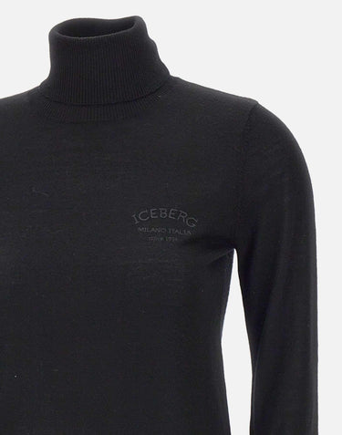 Iceberg women's wool turtleneck, black color, soft and warm, long sleeves, high neck, logo on chest, ribbed edges, regular fit
