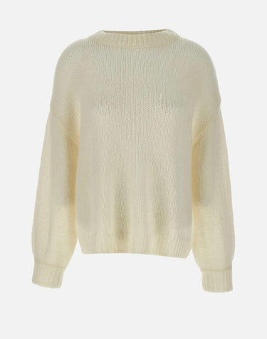 "Loose stitch crewneck" pullover fonna Soft Goat, white, wool and alpaca blend, long sleeves, crew neck, 12-ply open stitch weave, ribbed edges, super soft and warm, raglan shoulders, comfort fit