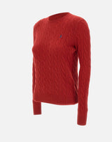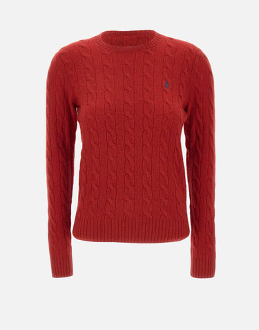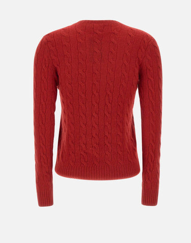 Polo Ralph Lauren women's "Classics" sweater in a wool and cashmere blend, available in red. Featuring the iconic cable knit, it has a round neck, long sleeves, and ribbed edges. The embroidered Pony logo on the chest adds a distinctive touch. Slim fit for an elegant and feminine look.