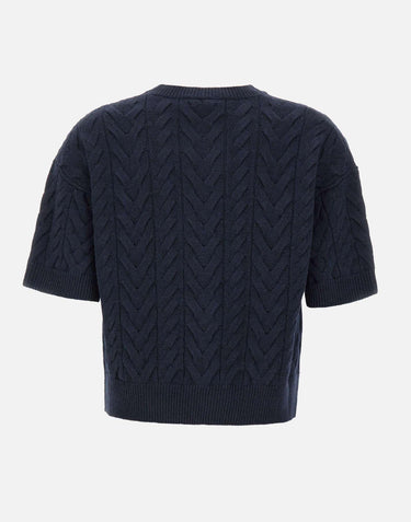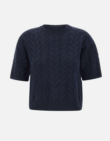 "Dominus" sweater 'S Max Mara, blue, short sleeves, round neckline, herringbone pattern, ribbed edges, regular fit