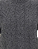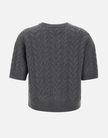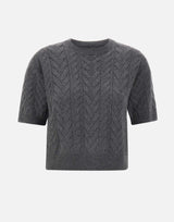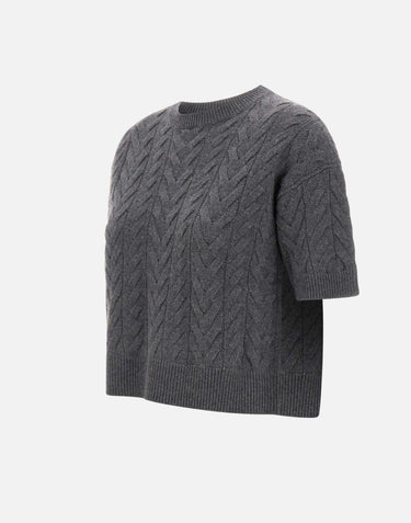 "Dominus" sweater 'S Max Mara, grey, short sleeves, round neckline, herringbone pattern, ribbed edges, regular fit
