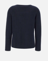 Maglia "Georg" 'S Max Mara in lana e cashmere blu navy, realizzata con pregiato filato e lavorazione seamless per un comfort superiore. Presenta girocollo, maniche lunghe e bordi a costine, per un look essenziale e sofisticato. Vestibilità regolare, perfetta per outfit eleganti e quotidiani. Made in Italy
