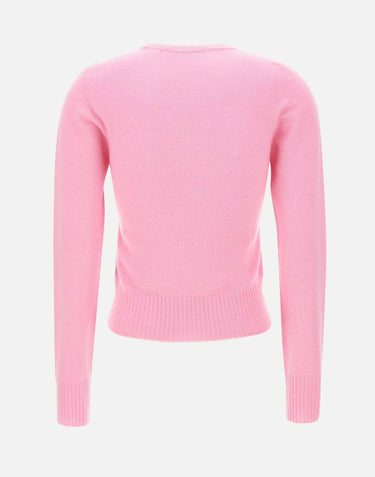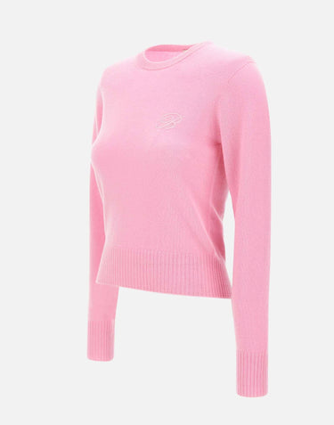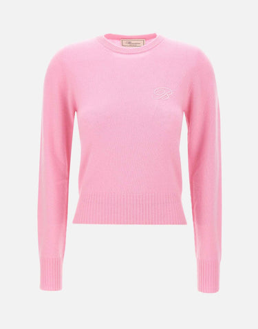 Blumarine cashmere sweater, baby pink, long sleeves, round neckline, ribbed edges, embroidered initial logo on chest, regular fit, made in Italy