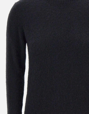 Maglia donna Filippo De Laurentiis misto lana e seta , colore nero, maniche lunghe, girocollo, orli a costine, morbida e calda, regular fit, made in Italy