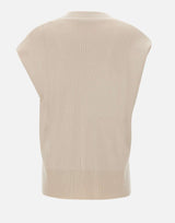 Elena Mirò sweater in a sand-colored wool and viscose blend, featuring a V-neck, short sleeves with wide armholes, and side slits at the bottom for a loose and comfortable fit. Finished with ribbed edges. Regular fit, ideal for casual-chic transitional looks.