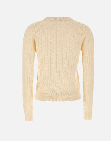 Sun68 woman made of wool, viscose and cashmere sweater, cream, long sleeves, cable knit, crew neck, ribbed hems, embroidered logo on chest, regular fit.