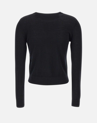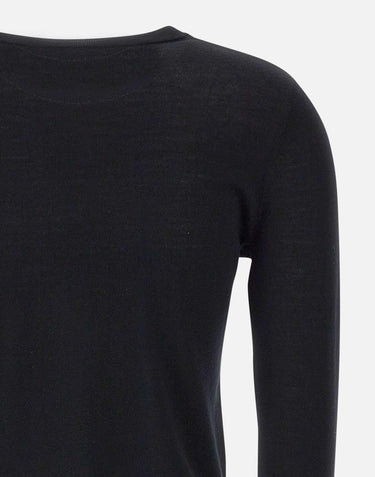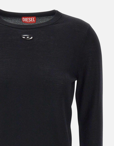 Diesel women's M-alinesa knit wool sweater, black, long sleeves, crew neck, ribbed edges, tone-on-tone Oval D logo embroidered on chest, raised stitching on cuffs, regular fit.