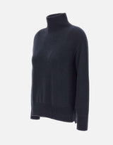 Maglia 'S Max Mara "Quercia" colore blu, realizzata in puro cashmere di alta qualità. Caratterizzata da collo alto, maniche lunghe e spalle raglan per una vestibilità confortevole. Gli spacchetti laterali e i bordi a costine su orlo e polsini aggiungono un tocco di stile raffinato. Relaxed fit, ideale per look casual-chic e per valorizzare outfit a strati. Made in Italy
