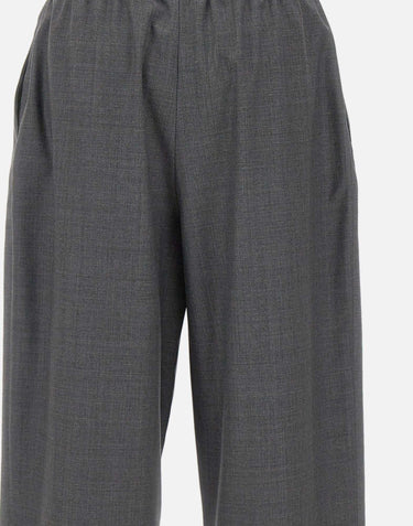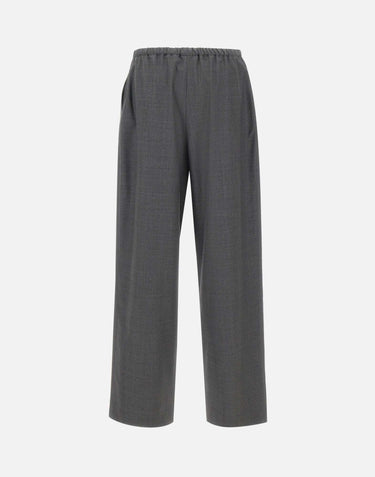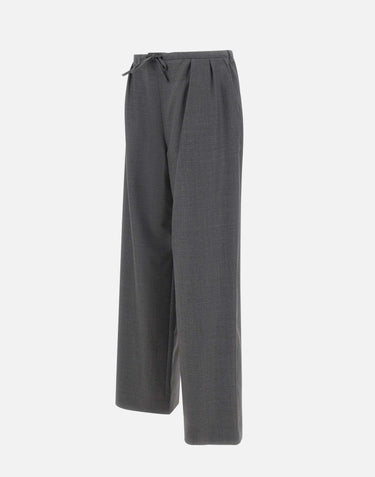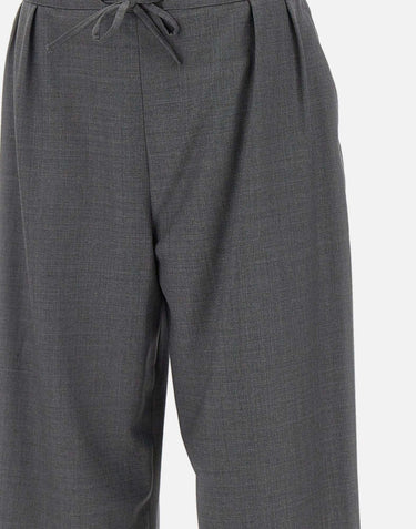 Loulou De Saison "Cove" trousers, in anthracite gray, crafted from soft chambray wool for an elegant and comfortable look. Featuring a wide leg with double front pleats, a belted waist with an adjustable drawstring, side welt pockets, and a 27 cm leg cuff. Regular fit, ideal for completing contemporary tailored outfits.