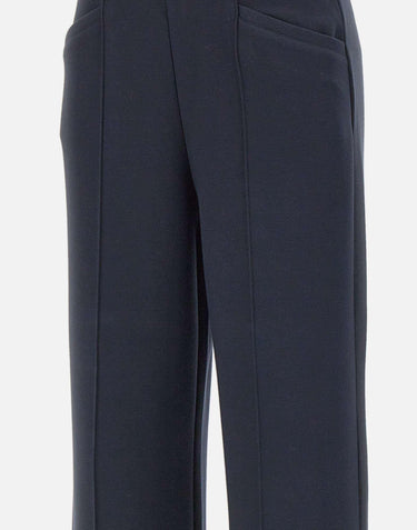 Elena Mirò blue trousers made from lightweight scuba fabric for comfort and freedom of movement. Cropped with an elastic waistband, front pockets, and a center pleat for a sleek look. The 27 cm hem and regular fit make them perfect for casual-chic looks and leisure wear.