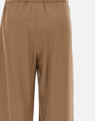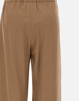 'S Max Mara "Floria" trousers in soft stretch wool flannel, camel color. Jogger-style with elasticated waistband and adjustable drawstring finished with silver-tone tips. Slant side pockets and 26 cm hem. Length 102 cm, regular fit. A refined choice for relaxed yet polished outfits.