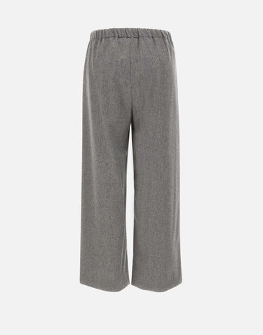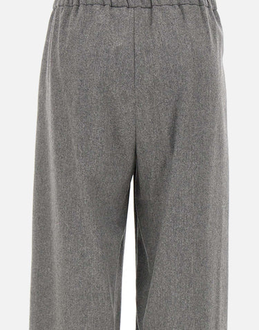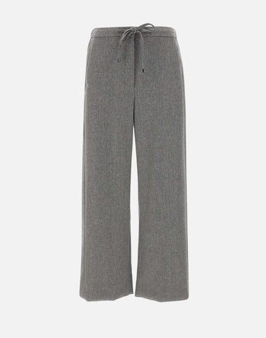 'S Max Mara "Floria" trousers in soft stretch wool flannel, grey. Jogger-style with elasticated waistband and adjustable drawstring finished with silver-tone tips. Slant side pockets and 26 cm hem. Length 102 cm, regular fit. A refined choice for relaxed yet polished outfits.
