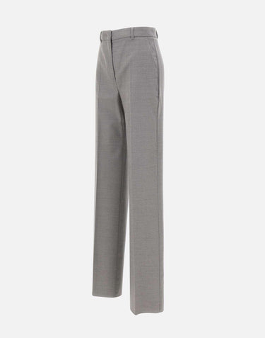 "Lambro" trousers in stretch wool flannel, grey color, designed with a straight-leg silhouette. Featuring high waistband, zip fly with hook closure, pressed front crease, French pockets and belt loops. Regular fit, perfect for office wear and sophisticated everyday looks.