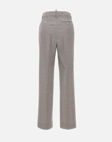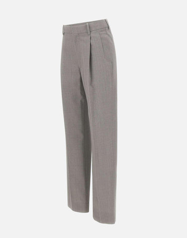 Victoria Beckham tailored wool trousers in gray with a tailored fit. Featuring double pleats, belt loops, and a zip and hook closure, they have side welt pockets and a single back pocket with a button. The wide leg with a 20 cm hem lends a structured and contemporary elegance. Regular fit.