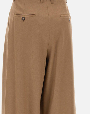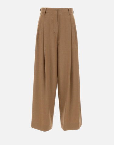 "Titty" trousers by 'S Max Mara, crafted from pure camel-colored wool. Featuring double front pleats, extra-wide leg with 28 cm hem, regular waist with zip and hook closure, French pockets, buttoned back pockets, and belt loops. A chic regular-fit piece perfect for polished, elegant outfits.