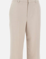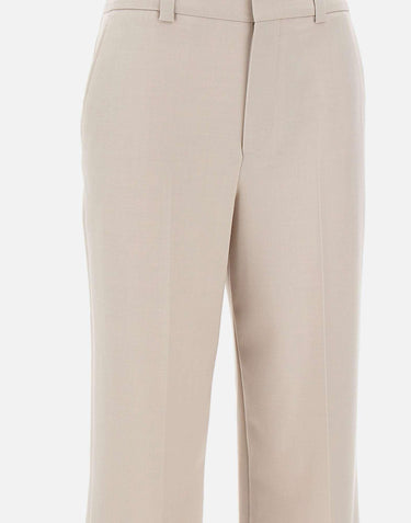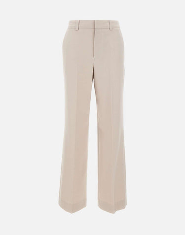Victoria Beckham "Tailored Straight Leg Trousers" in an ice wool blend with a tailored design. They feature a regular waist with belt loops, a zip, hook, and button closure, side welt pockets, and back flap pockets. The straight, wide leg, with a 26 cm hem, elegantly flatters figure. Regular fit.