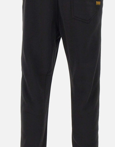 G-Star Raw "Premium core" men's cotton blend jogger, black colour, elasticated waist with matching drawstring, side welt pockets, logo on left leg, back pocket with logo label, ribbed hems, elasticated bottom, fleece interior, regular fit.