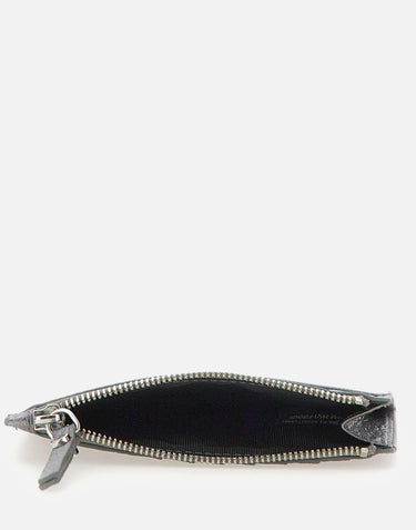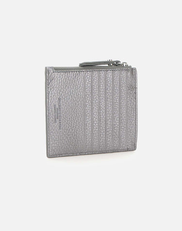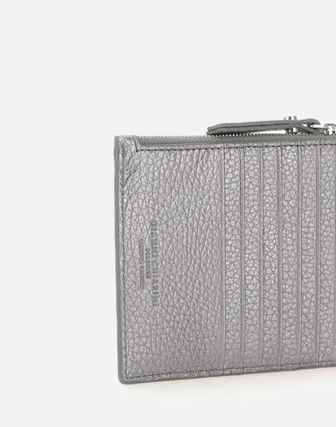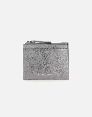 Gianni Chiarini "Wallet grain"maxi grain leather wallet, city noire silver color, zip pocket for coins, silver plating, external logo, external slip pocket, multi-compartments for cards, embossed logo,